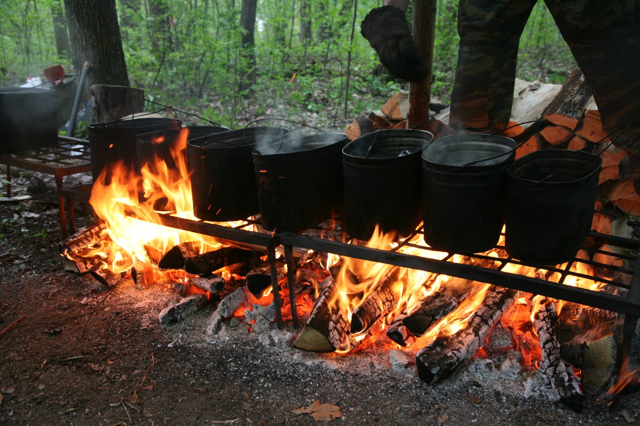 - ВАЖНО: Не прокаливать пустой котелок на костре