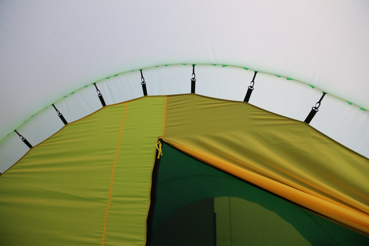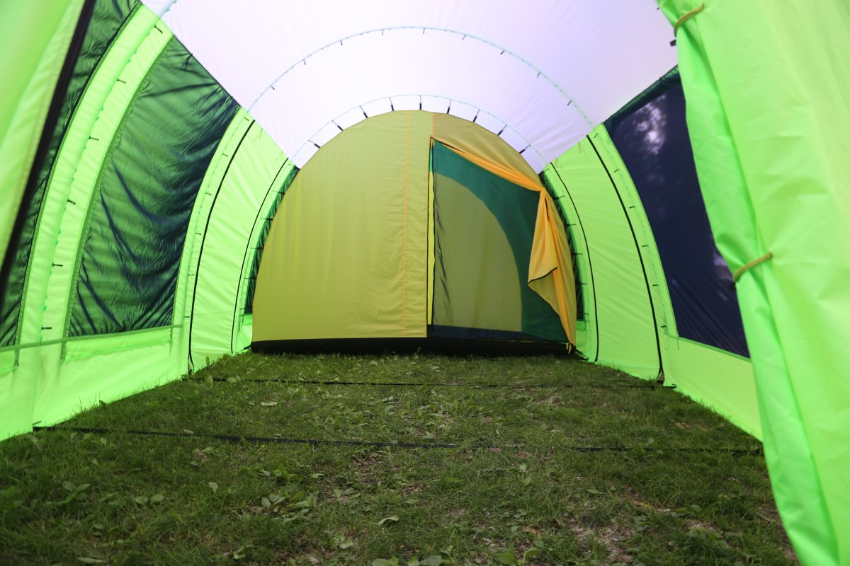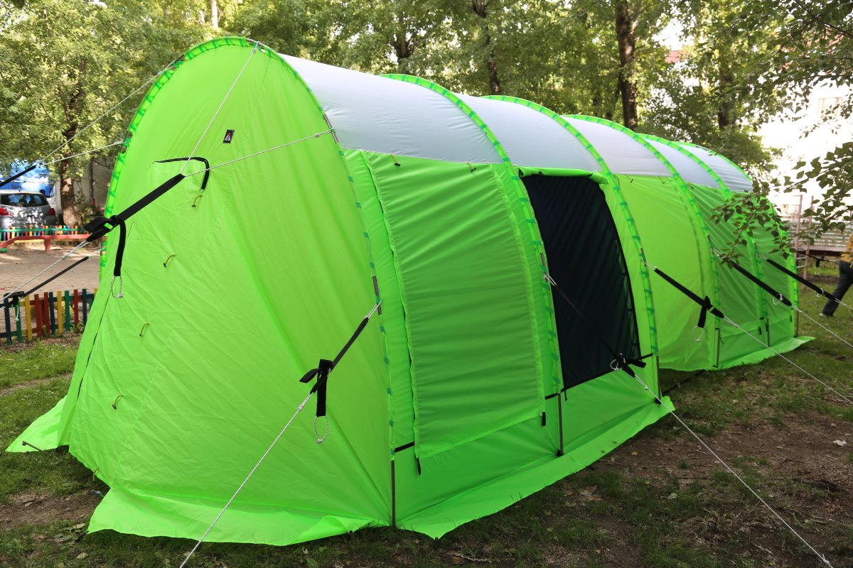 - Внутренняя палатка для проживания имеет два входа на торцах с противомоскитной сеткой
