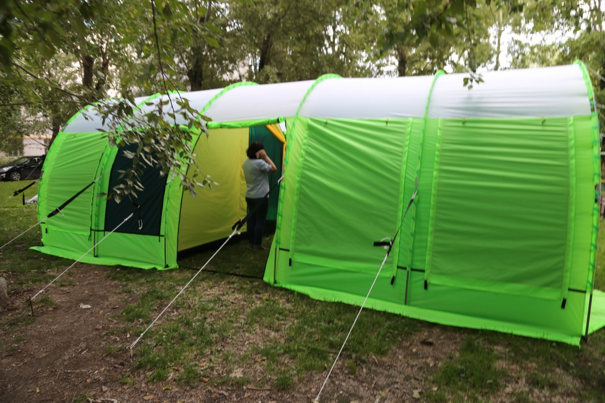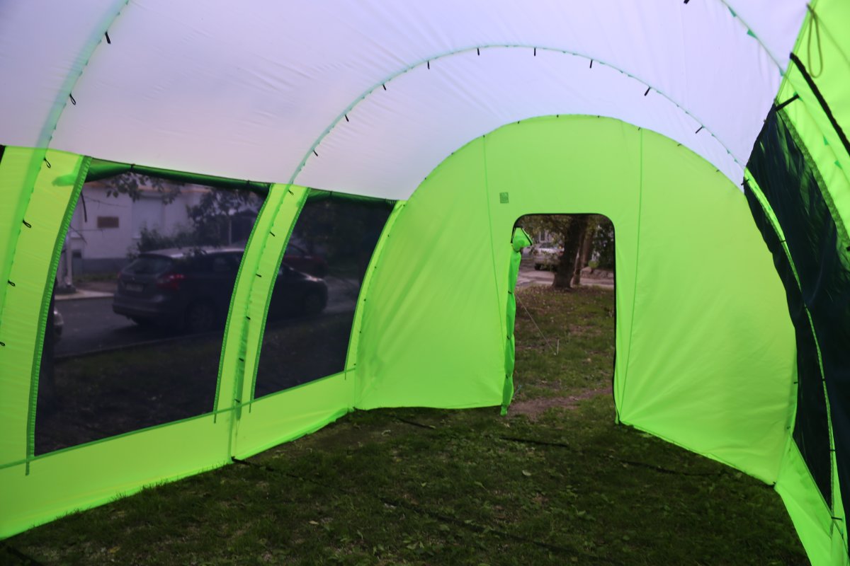 Две большие просторные внутренние палатки позволяют комфортно разместиться компании до 14-16 человек, с сохранением большого тамбура для хранения вещей.