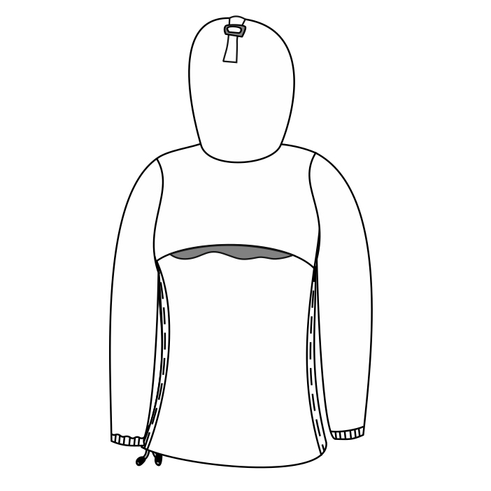 Водозащитная куртка-анорак из прочной ткани с мембранным слоем. Двухзамковые молнии в боковых швах куртки позволяют раскрыть боковины снизу и превратить анорак в пончо для велосипедистов.