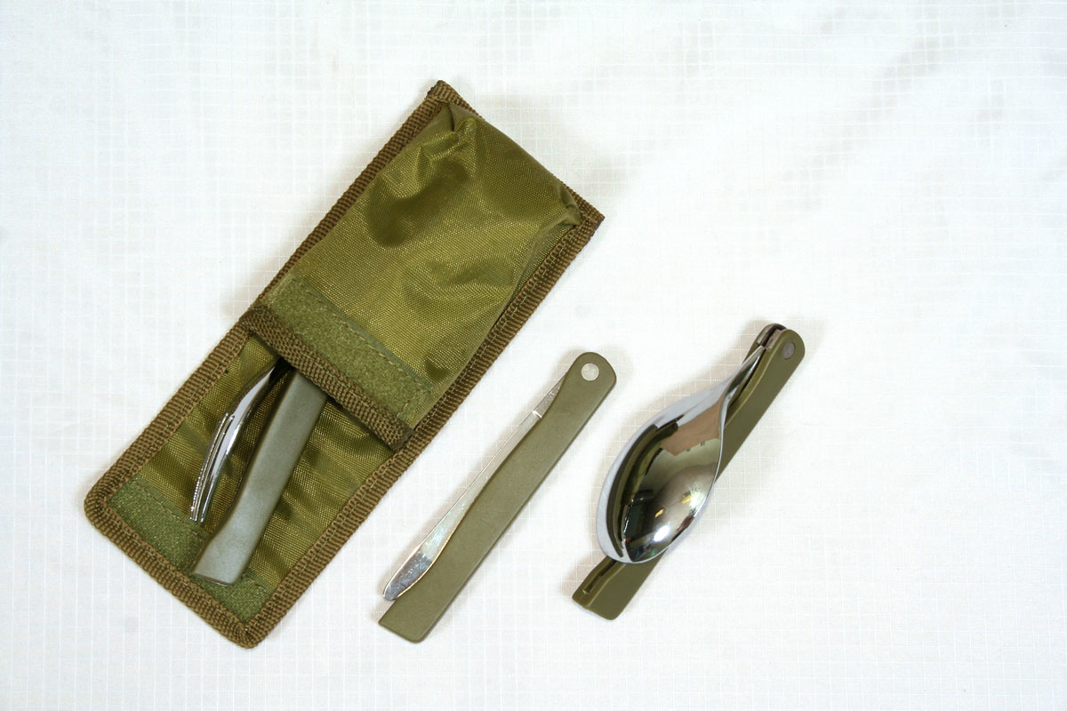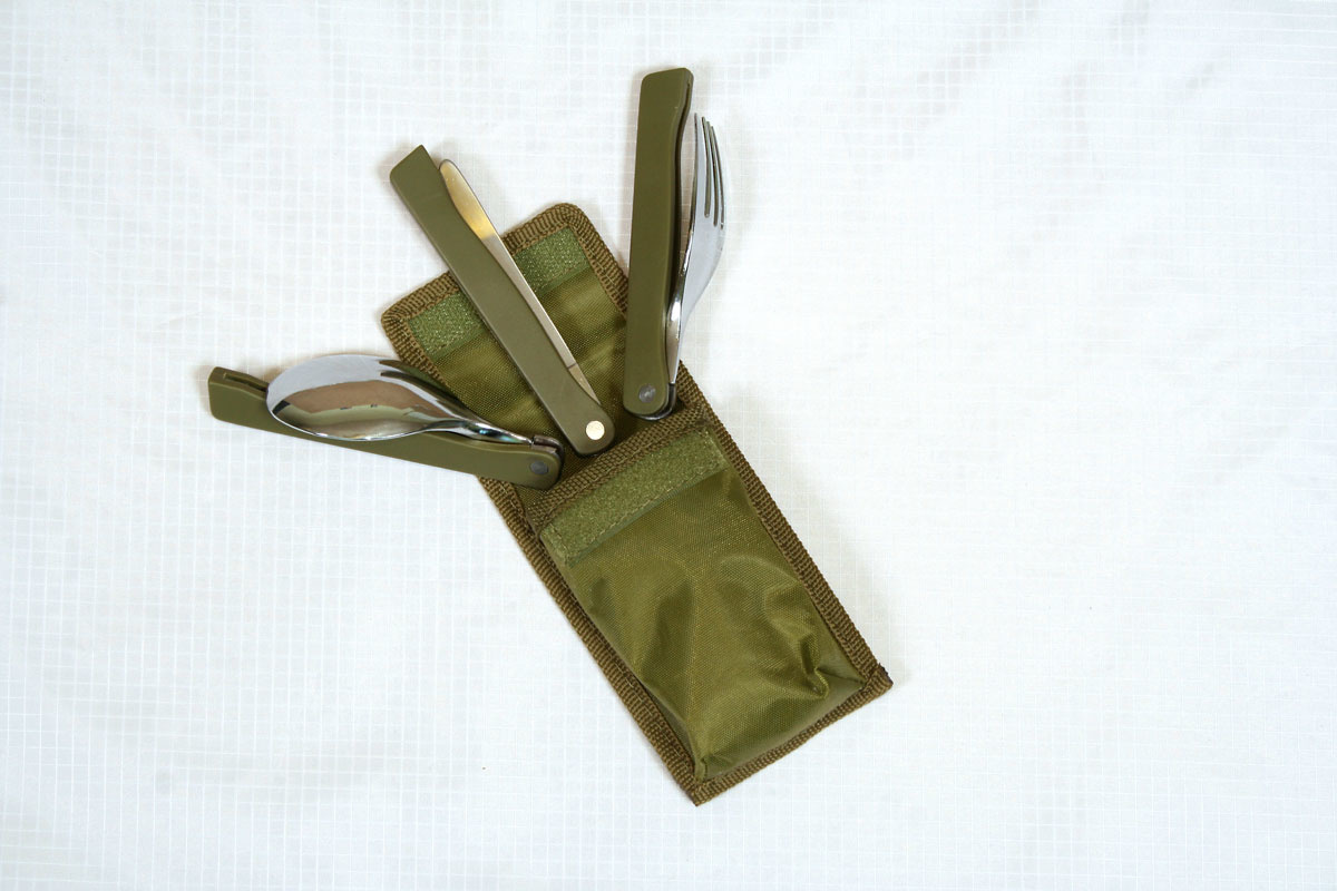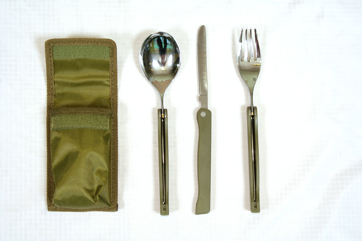 Самые нужные в походе классические столовые приборы: ложка, вилка и нож. Надежный складной механизм.