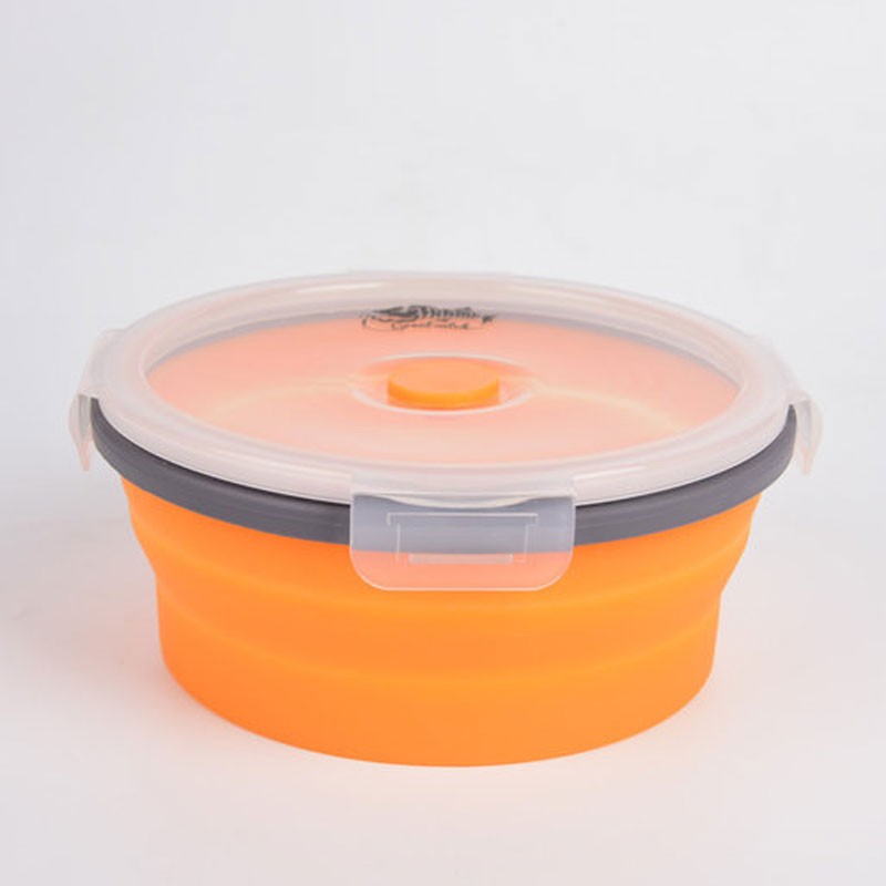Круглый складной силиконовый контейнер. Большой, 800 мл. Надежная крышка.