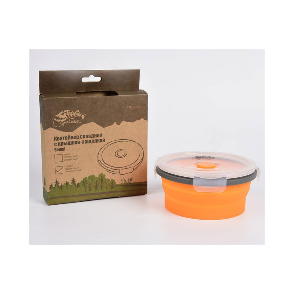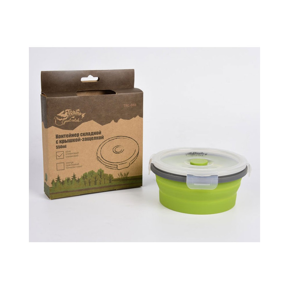 Круглый силиконовый складной контейнер 550 мл с крышкой-защелкой Tramp TRC-087.