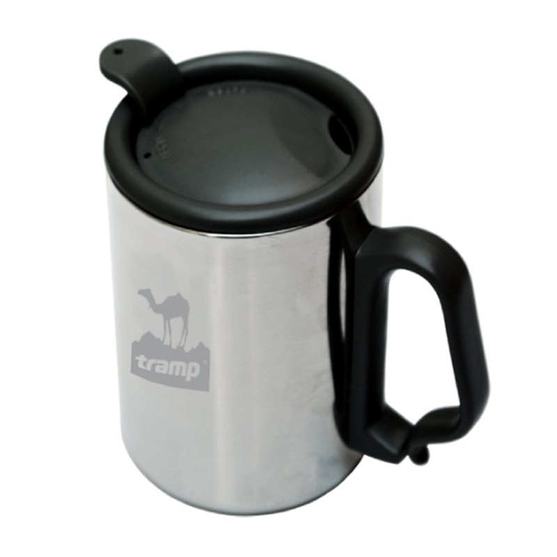Термокpужка с поилкой и защелкой Tramp 350 мл. Термокружка с двойными стенками отлично сохраняет тепло, не обжигает губы. Пригодится в различных походах, экспедициях. Крышка из термостойкого пластика предохраняет от проливания и не дает напитку остыть. Металлическая ручка приварена к корпусу, сверху пластиковая защита. Полированная поверхность легко моется.