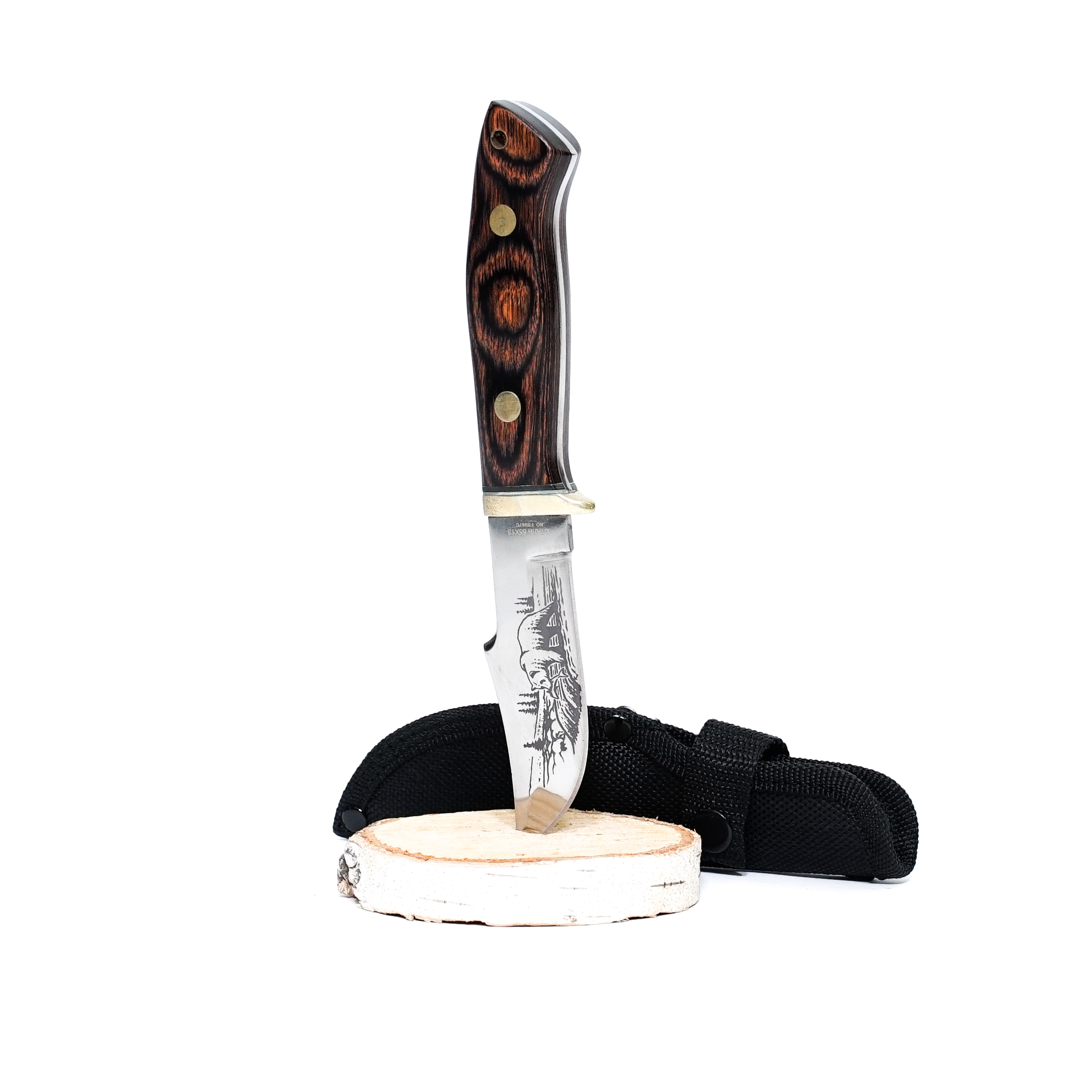 Непременный и надежный спутник охотника, рыбака или туриста. Нож с фиксированным лезвием и рукоятью из пластика и отверстием для креплений.