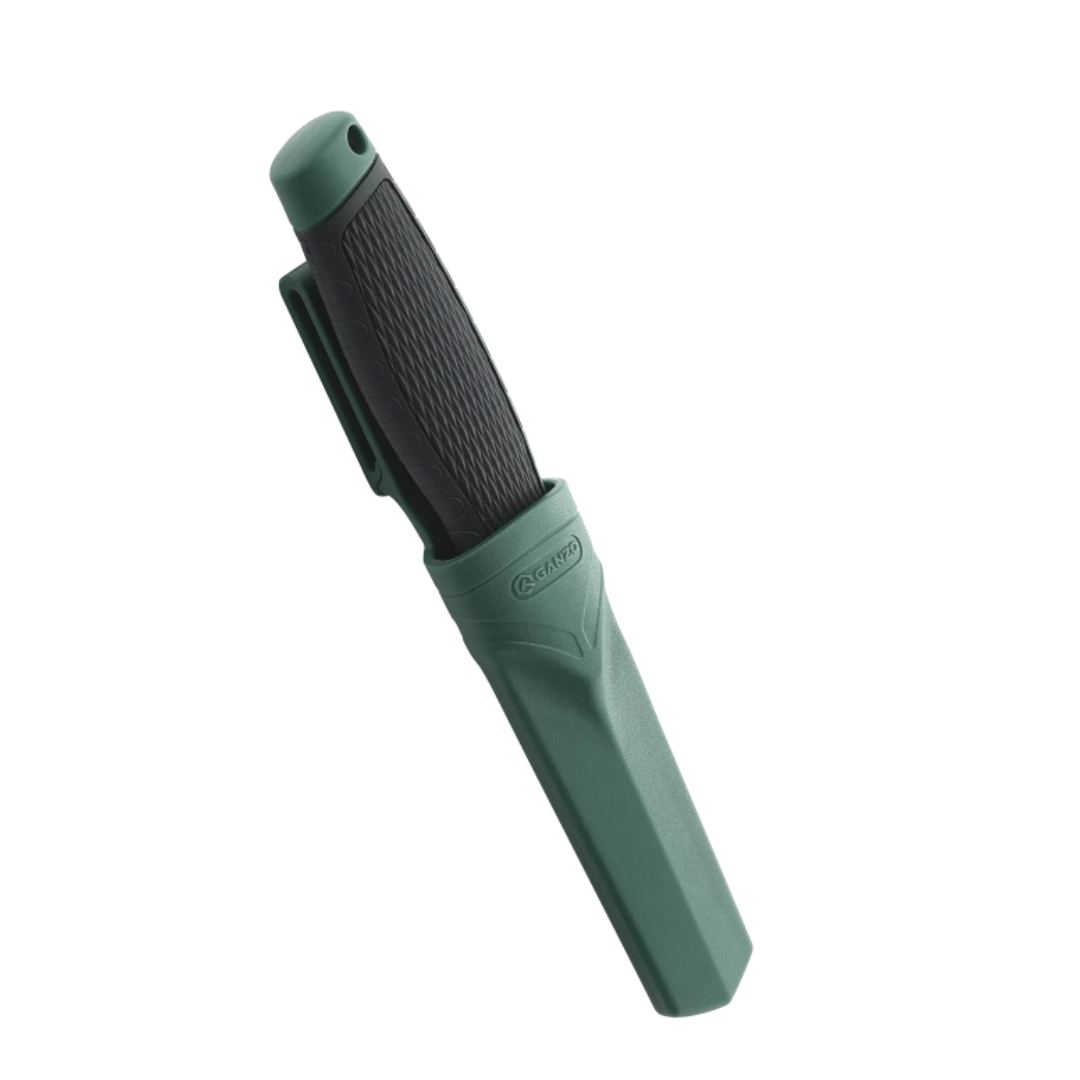 Эргономичная рукоять сделана из материала ПП+ТПР. ТПР или термопластичная резина – это синтетический полимер, обладающий свойствами резины и пластика. В перчатках он используется как слой, защищающий руку от ударных воздействий – способен поглощать и рассеивать энергию удара. Работать таким ножом безопасно и удобно. Ножны полипропиленовые.