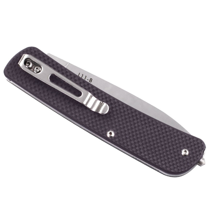 Открывается Ruike L11 вручную, при помощи насечки на клинке, которую следует поддеть ногтем. Жесткой фиксации лезвия в этой модели не предусмотрено, и нож держится открытым за счет скользящего соединения Slip joint. Вес этой складной модели составляет всего 84,5 грамма.