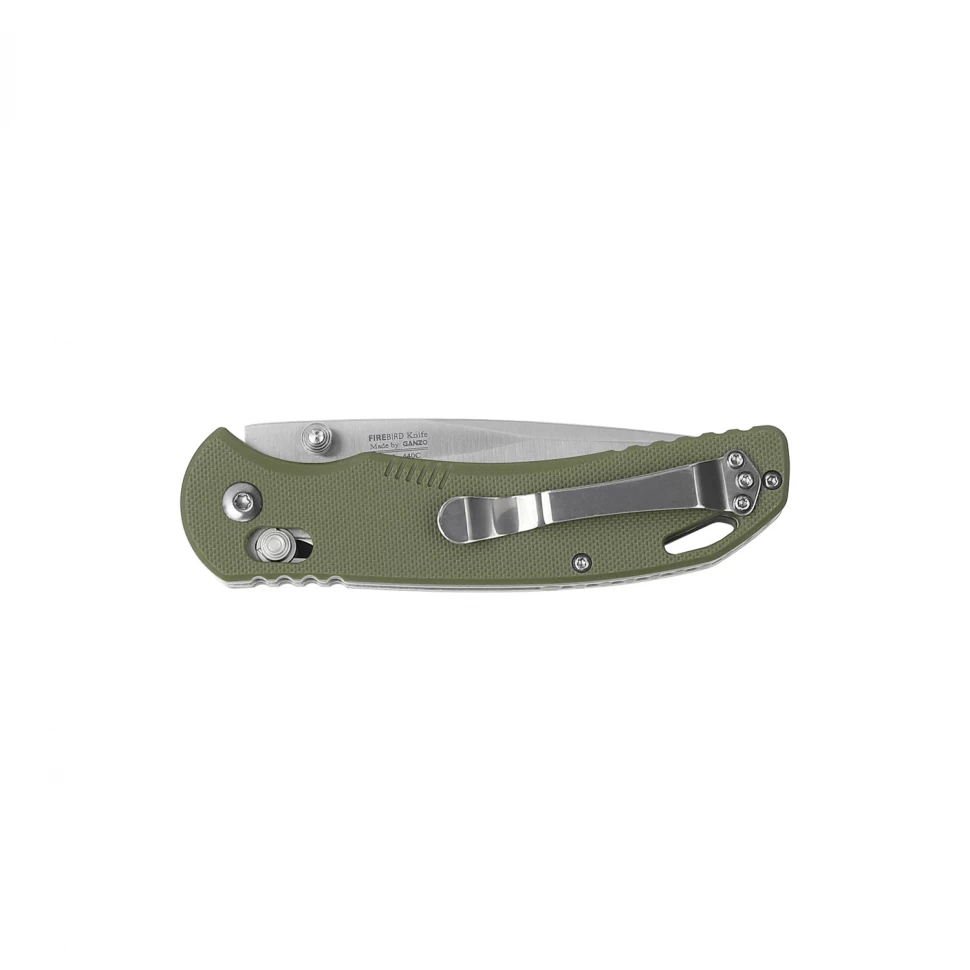 Рукоятку Firebird F753M1 производители постарались сделать сразу и легкой, и прочной. Этого им удалось добиться при помощи использования композитного стеклопластика. Такой материал (G10) практически ничем не уступает в крепости металлу, зато весит практически как обыкновенный пластик. К тому же, ему легко придать нужную форму и покрасить в любой цвет. Так, вниманию покупателей предлагаются три варианта ножей: с оранжевой, темно-зеленой или же черной ручкой. В любом случае, накладки крепятся с обеих сторон рукоятки, в них имеется небольшое по размеру отверстие для продевания темляка. Клипсу, изготовленную из стали, можно переставить на обратную сторону, в зависимости от того, какой вариант покажется вам более удобным.