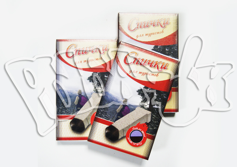 Средние спички для туристов. Рекомендуем взять несколько пачек и раскидать по рюкзакам.