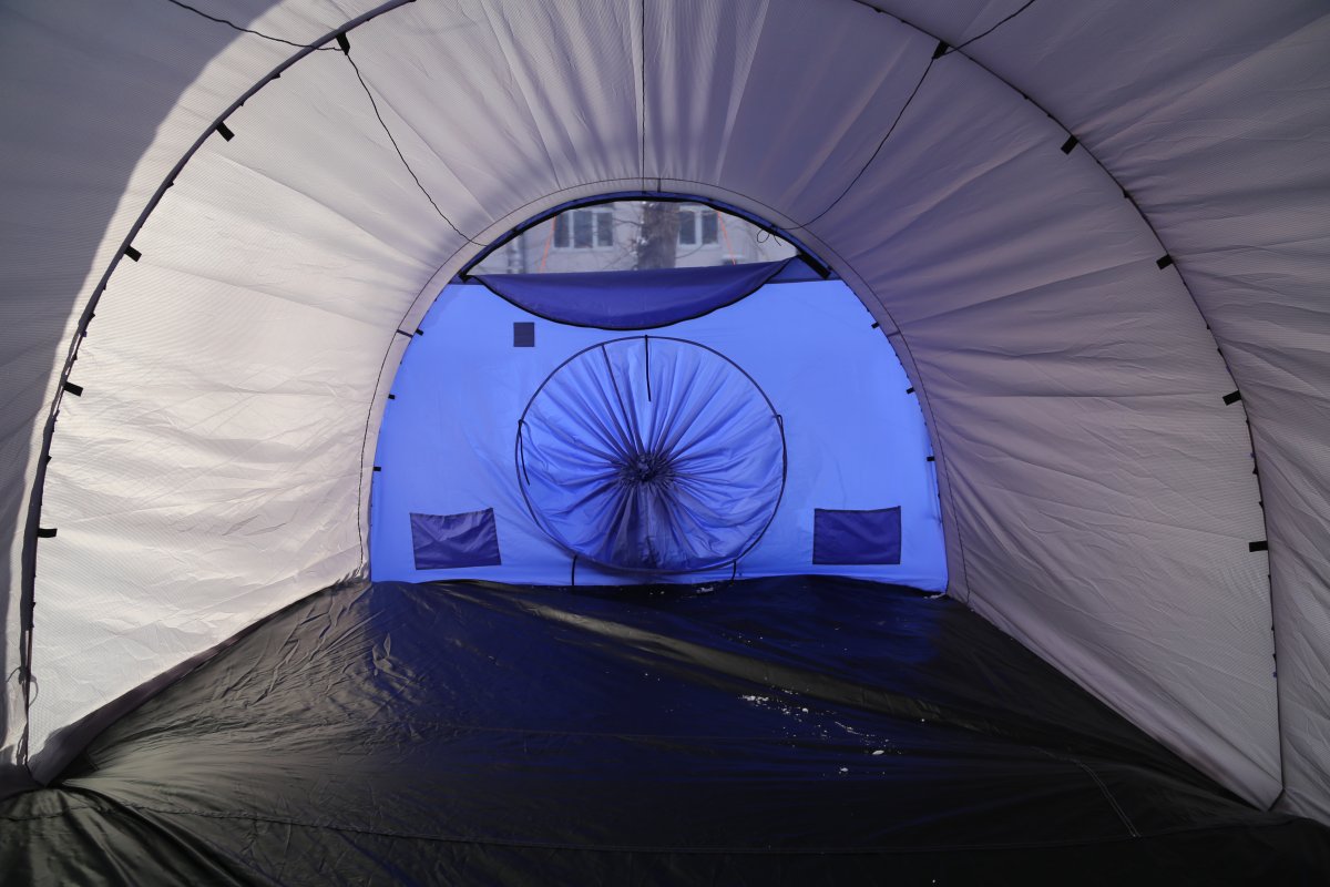 На каждом торце окно-вентиляция из москитной сетки, закрывающееся клапаном на молнии