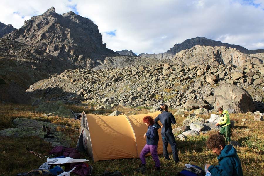 - В пешем или горном категорийном походе большой группой удобно использовать одну большую палатку, вместо нескольких маленьких. Это облегчает рюкзаки участников похода, а также проживать в большой кают компании, готовить и принимать еду проще и веселей.