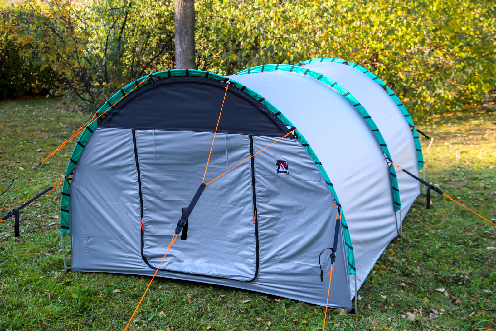На каждом торце окно-вентиляция из москитной сетки, закрывающееся клапаном на молнии