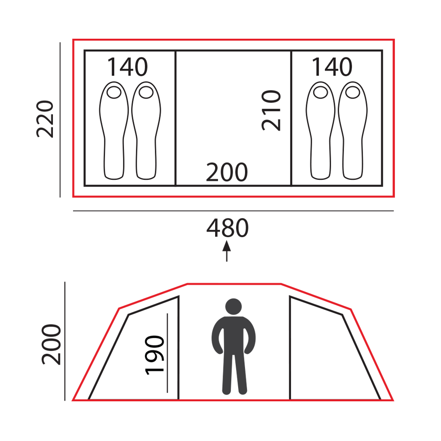 Двухслойная кемпинговая палатка BTrace Tube BIG 4 с двумя отдельными спальнями.