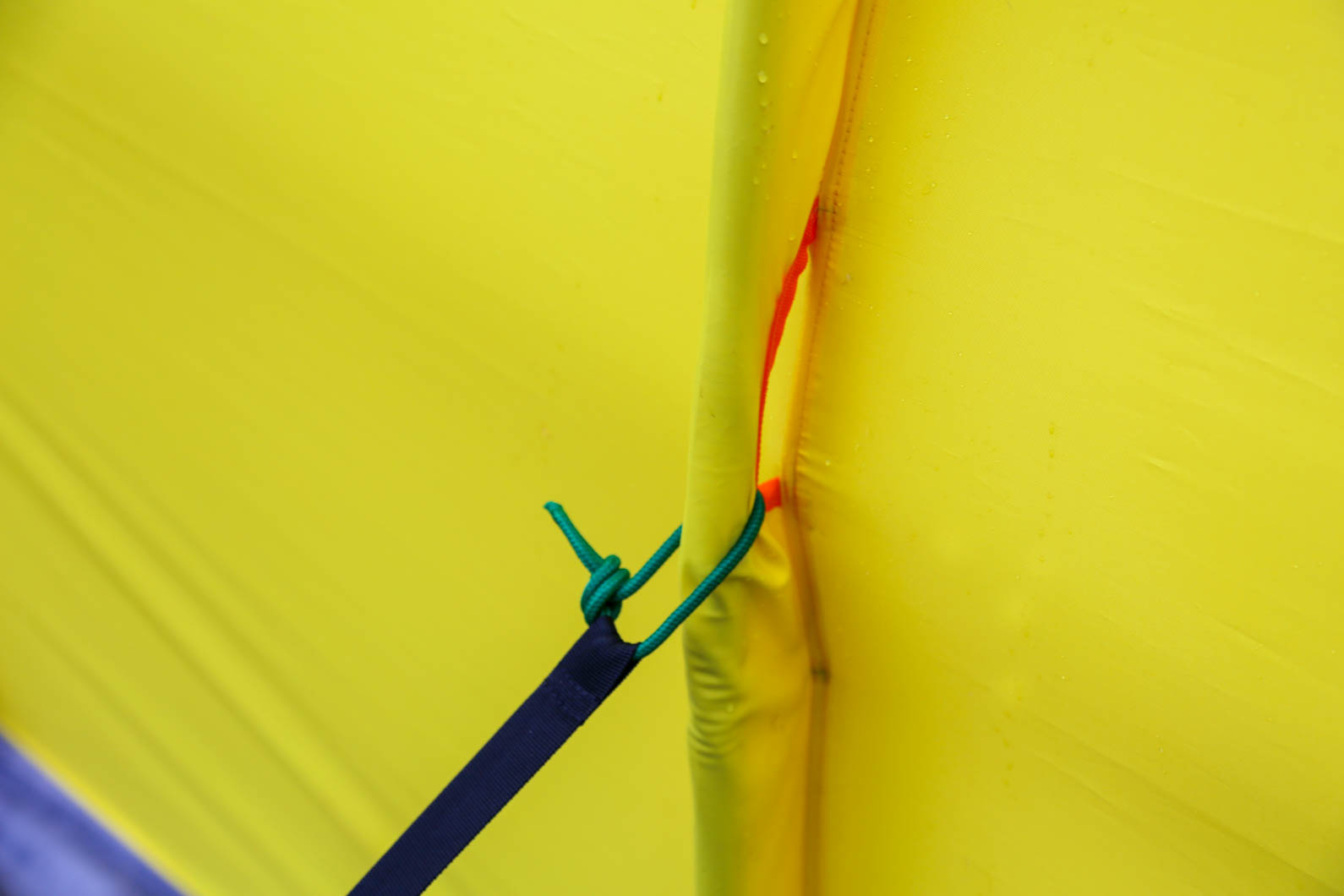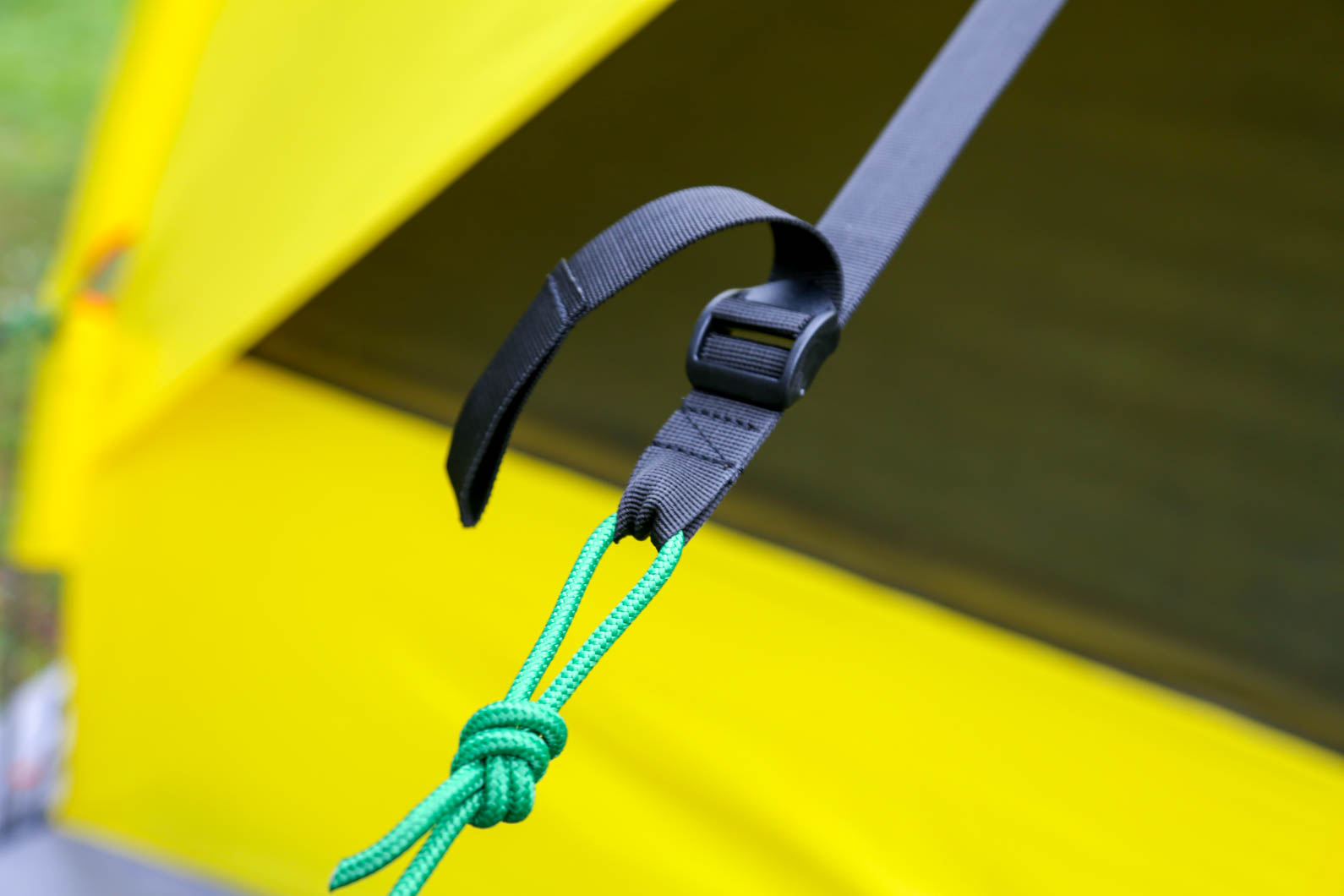 - В палатке используется система оттяжек "за каркас", что позволяет палатке выдержать сильные ветровые нагрузки. Уникальная система оттяжек с пряжками удобна для финишной подтяжки палатки