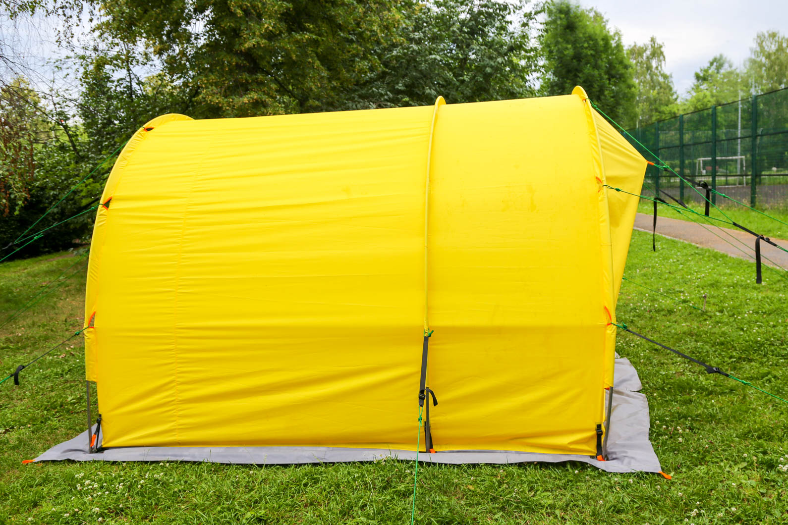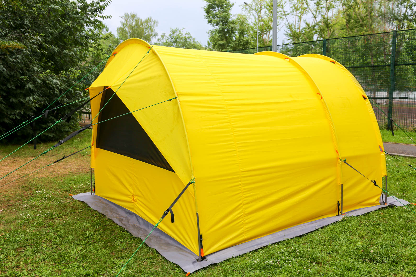 - Большое панорамное окно на заднем торце. Окно снабжено противомоскитной сеткой и закрывается клапаном на молнии