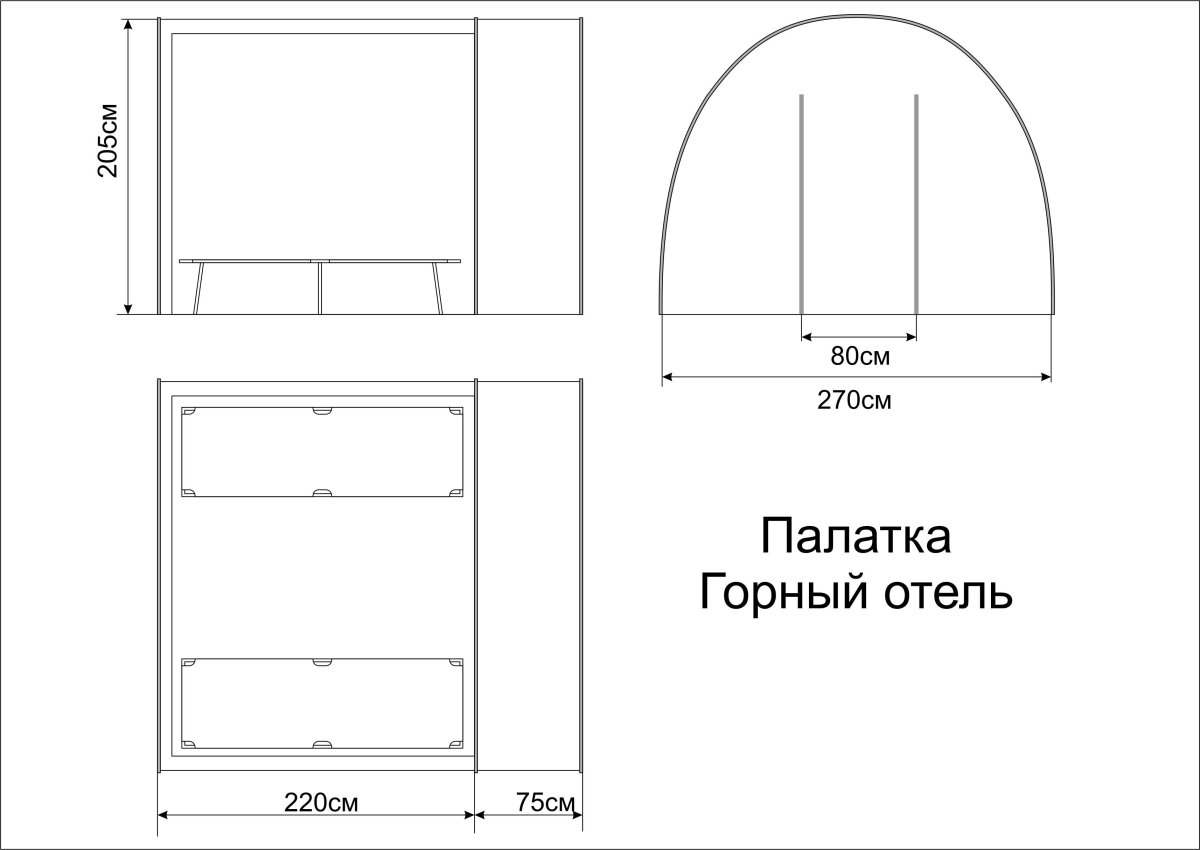 - Тент палатки без пола, имеет козырьки на торцах и отмостку по периметру для отвода излишней влаги