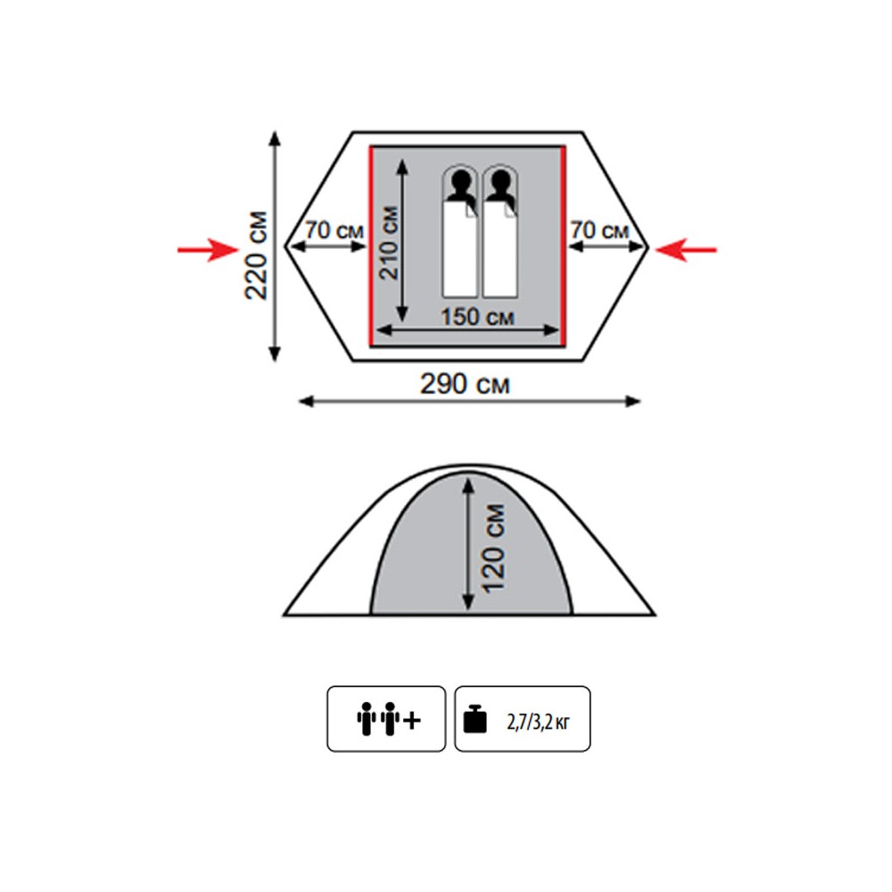 Туристическая двухместная палатка Tramp Lite Tourist - двухслойная, с двумя входами и двумя тамбурами.