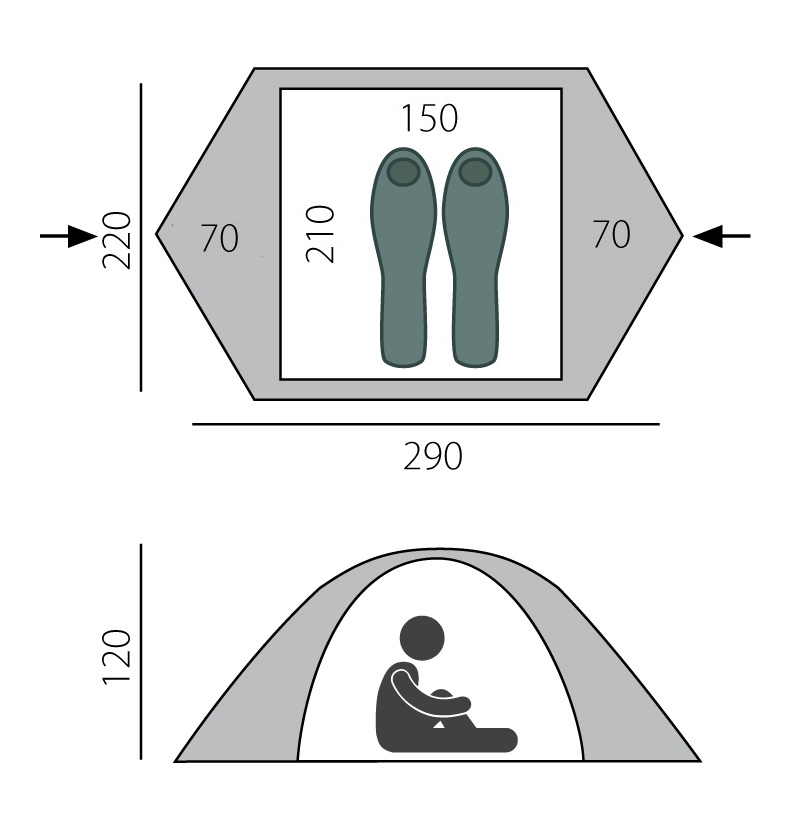 - Тент: 100% полиэстер 75D/190T Diamond RipStop, 6000 мм в ст