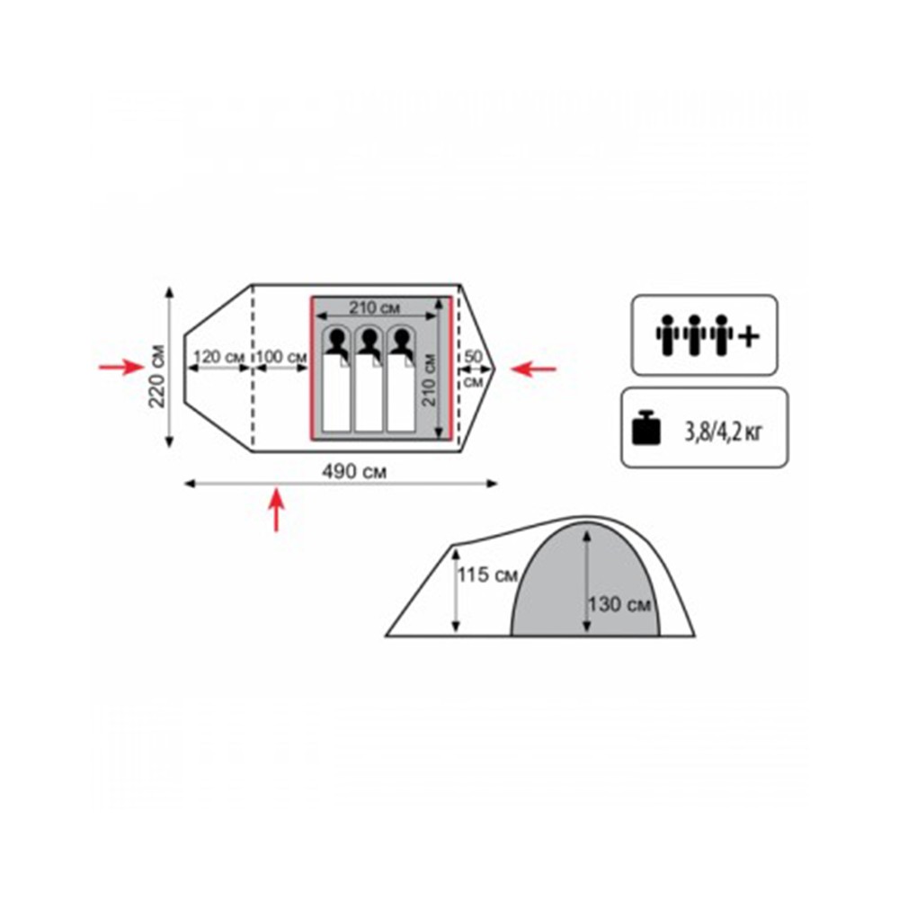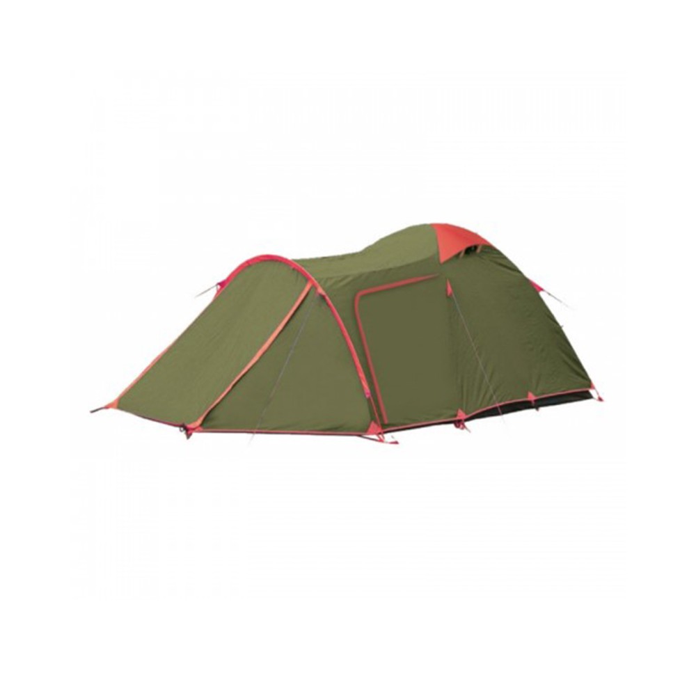 Трехместная двухслойная летняя палатка Tramp Lite Twister 3 с двумя входами и тамбурами: маленьким - размером 50 см и большим - размером 220 см на отдельно стоящей дуге.