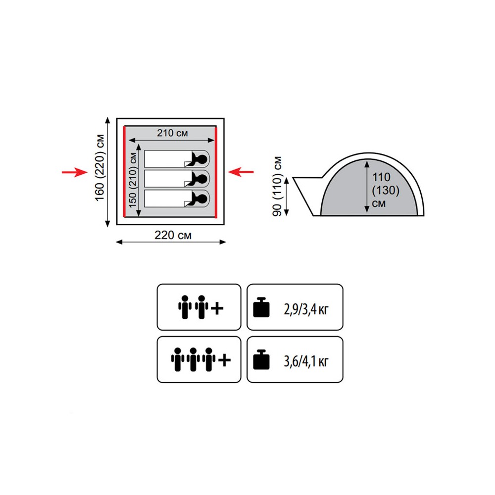 Трехместная двухслойная палатка Tramp Lite Wonder 3 c двумя входами и навесом вместо тамбура.