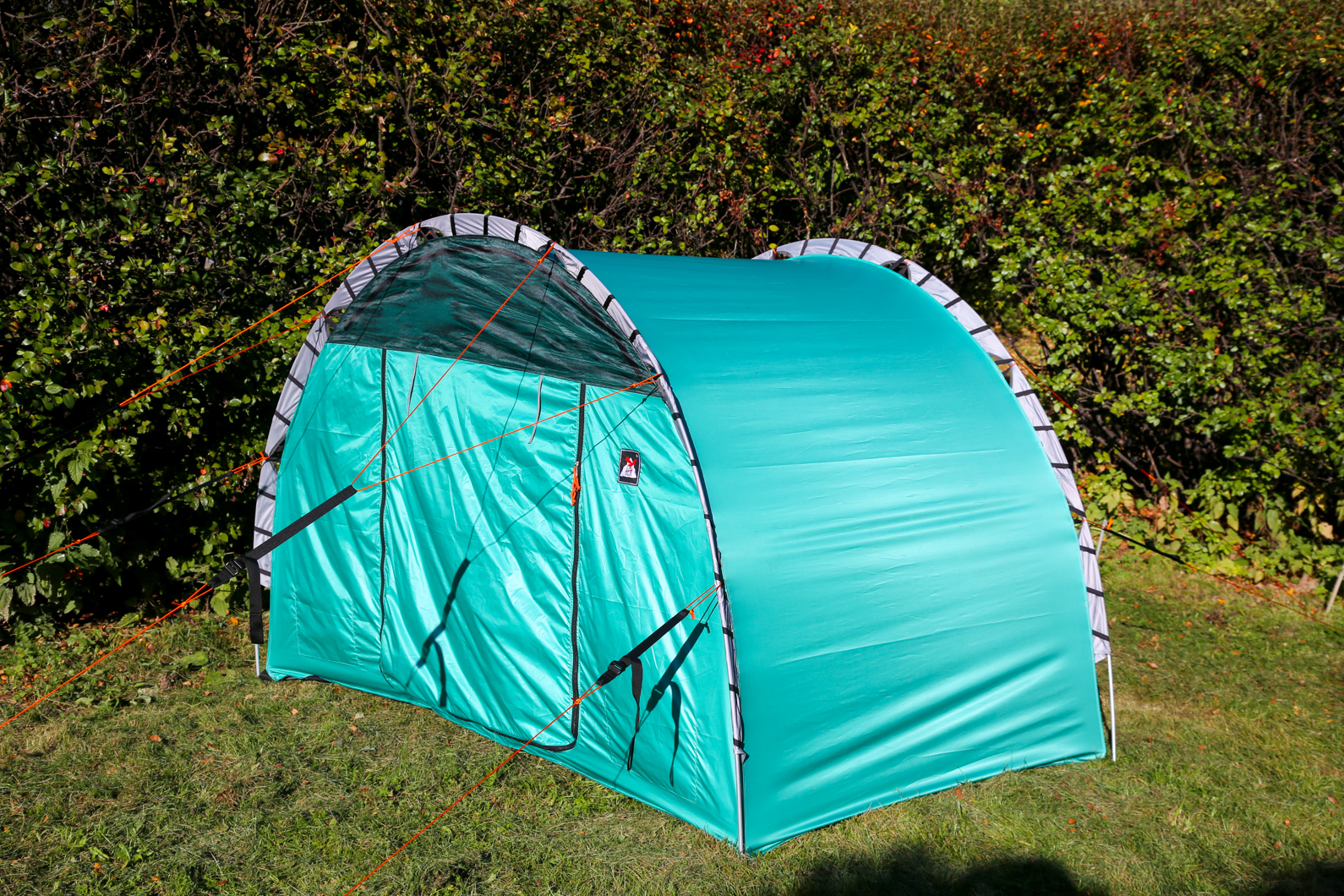- На каждом торце окно-вентиляция из москитной сетки, закрывающееся клапаном на молнии