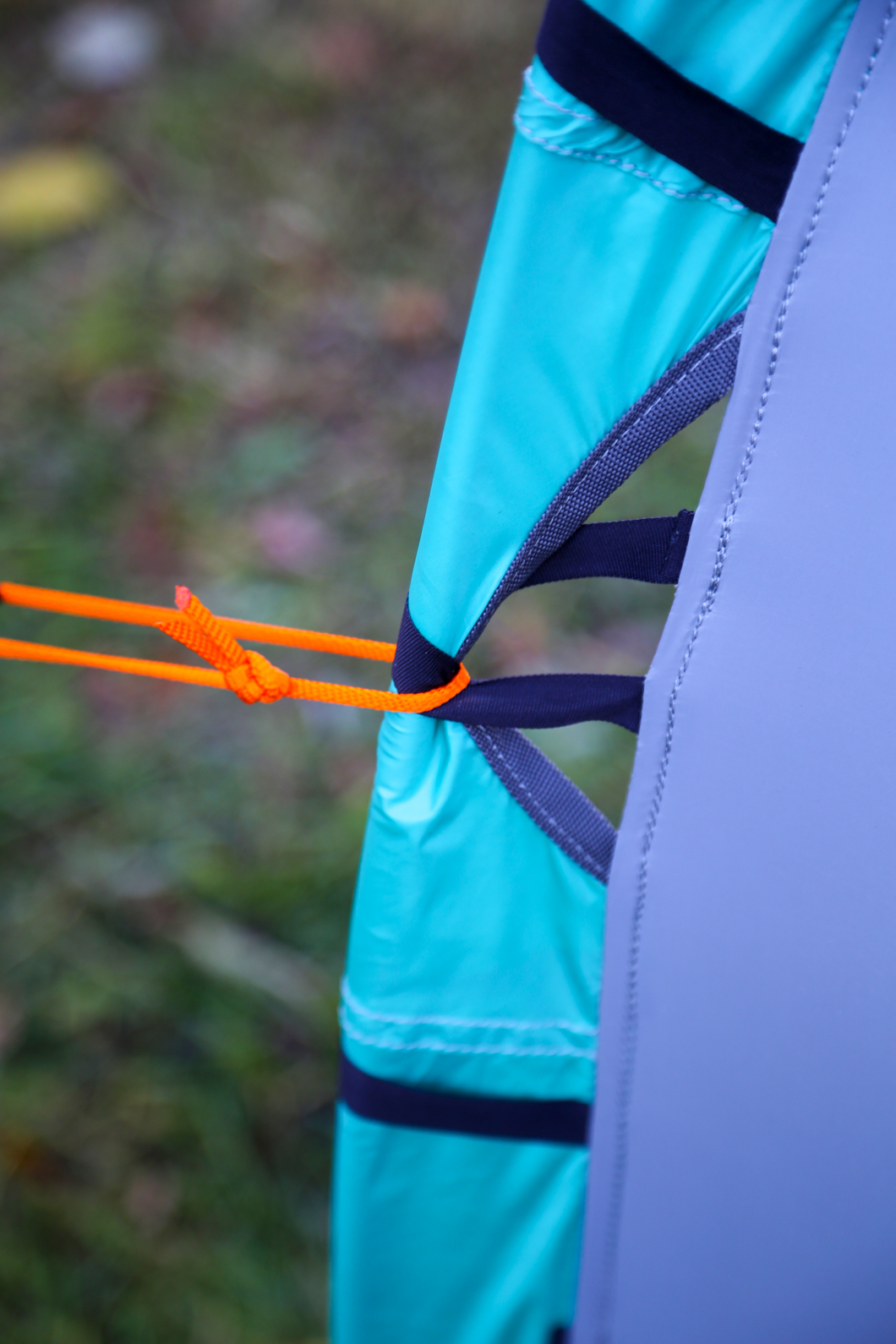 - Оттяжки крепятся за каркас и позволяют хорошо растянуть палатку при установке. Оттяжки не прикреплены к ткани палатки и при любых усилиях не способны разорвать ткань, это является отличительной особенностью от палаток классического исполнения