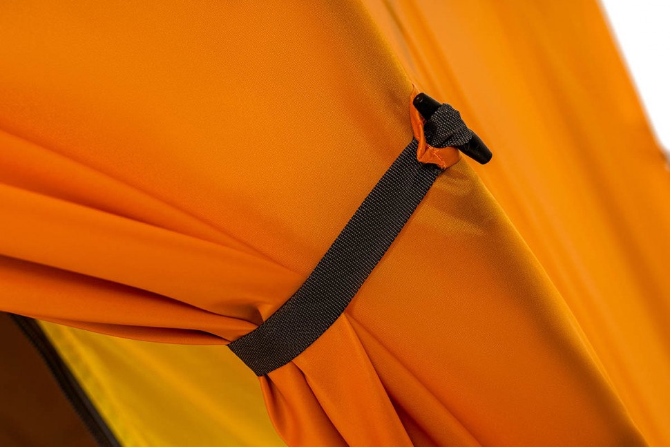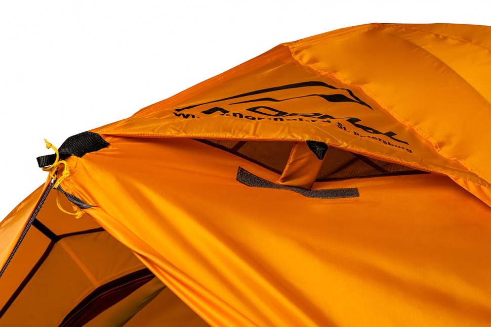 Для тента палатки используется материал Polyester Taffeta, более устойчивый к ультрафиолетовому излучению. Благодаря полиуретановому покрытию материал Polyester Taffeta имеет водоотталкивающие свойства. Такая ткань способна без протекания выдерживать давление водяного столба в 8000 мм, и это после года эксплуатации. Для сравнения — капля грозового дождя может оказать давление до 3000 мм водяного столба. В российском климате достаточным считается показатель в 4000 мм, однако мы предпочитаем закладывать большой запас прочности в свои изделия.