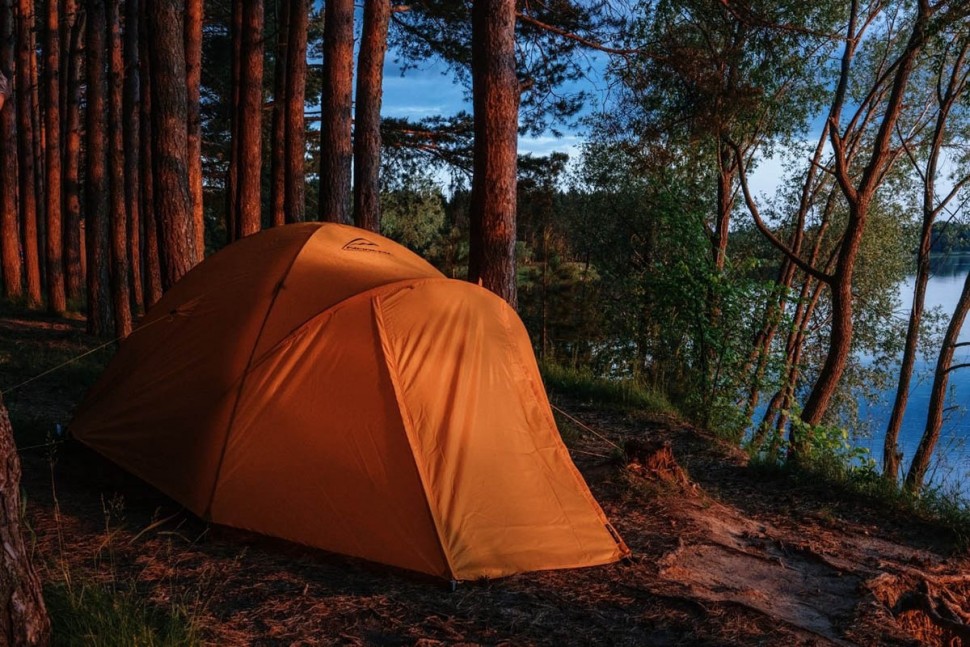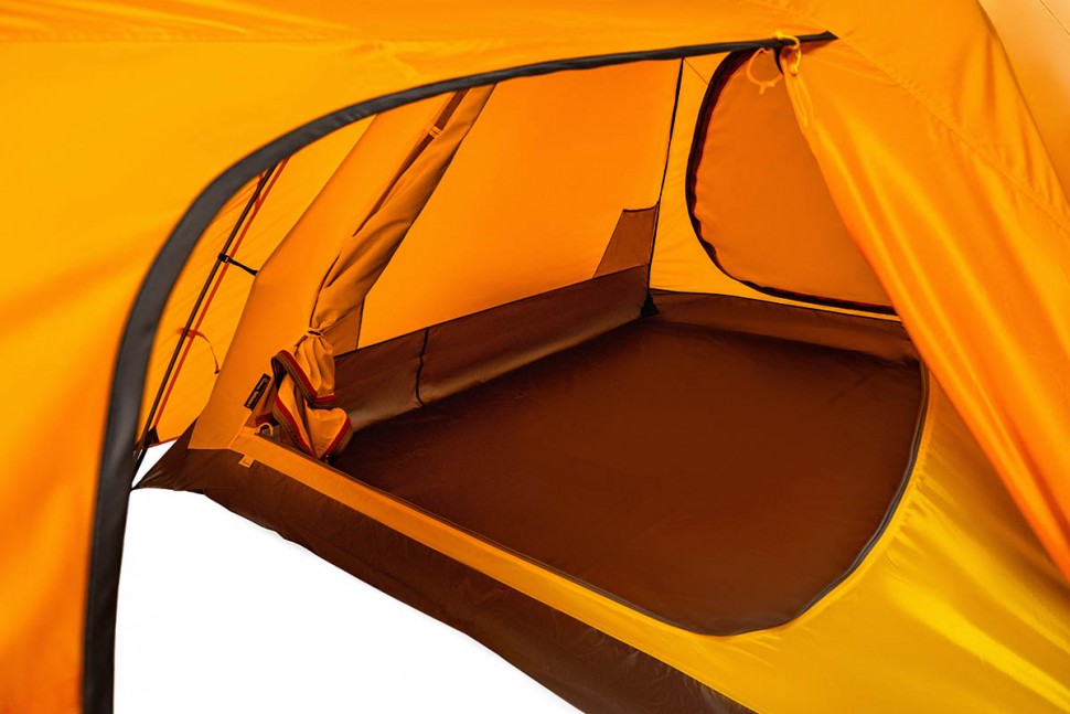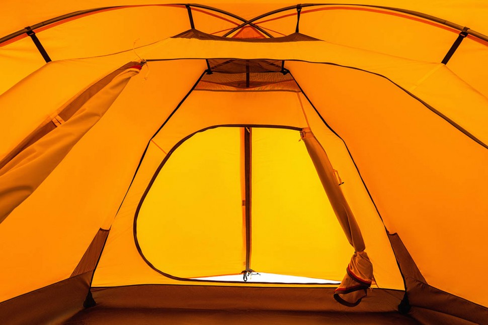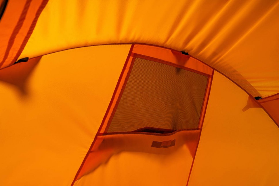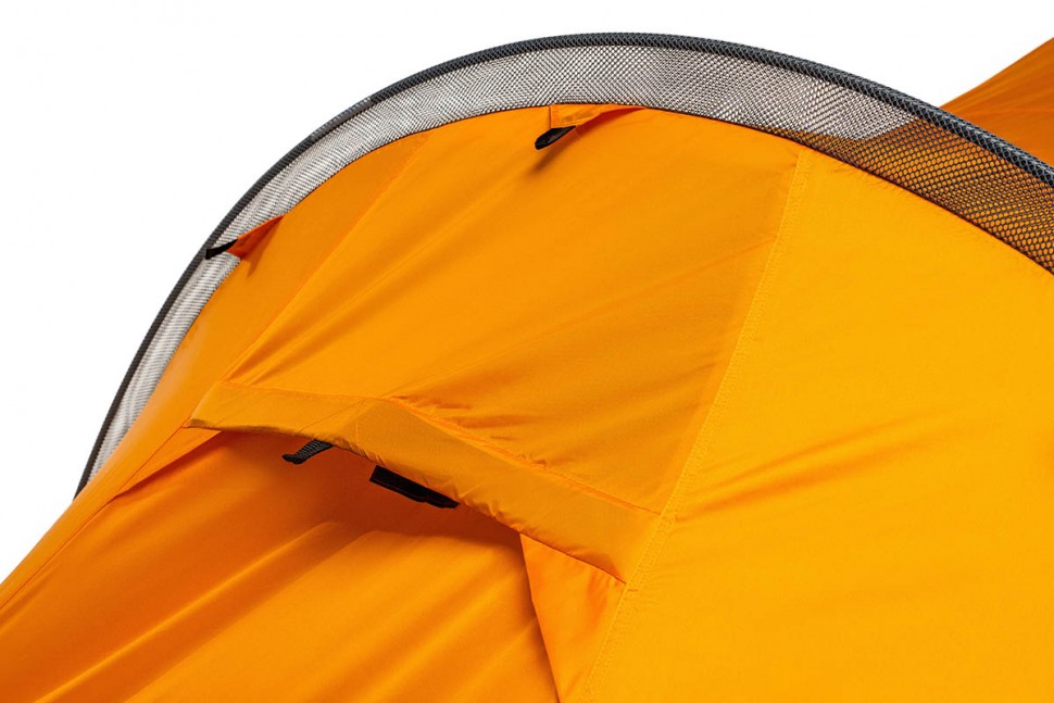 Для тента палатки используется материал Polyester Taffeta, более устойчивый к ультрафиолетовому излучению. Благодаря полиуретановому покрытию материал Polyester Taffeta имеет водоотталкивающие свойства. Такая ткань способна без протекания выдерживать давление водяного столба в 8000 мм, и это после года эксплуатации. Для сравнения — капля грозового дождя может оказать давление до 3000 мм водяного столба. В российском климате достаточным считается показатель в 4000 мм, однако мы предпочитаем закладывать большой запас прочности в свои изделия.