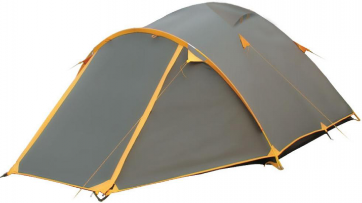 Универсальная двухслойная палатка с двумя входами и одним тамбуром для туристических походов в весеннее, летнее и осеннее время.