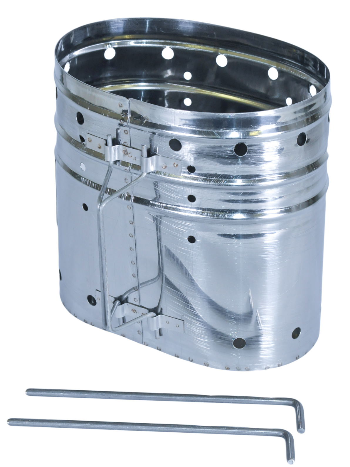 Оригинальная овальная Печка щепочница под Армейский котелок, заменит костёр для приготовления пищи в походных условиях, на охоте и рыбалке. Рассчитана для использования армейского котелка.