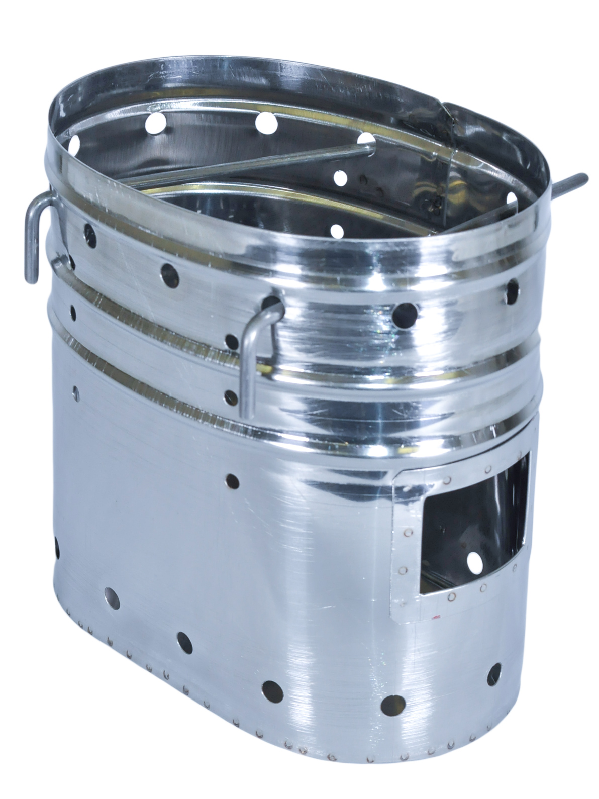 Печка-щепочница овальной формы под армейский котелок. Легкая и компактная. Пригодится в условиях дефицита дров.
