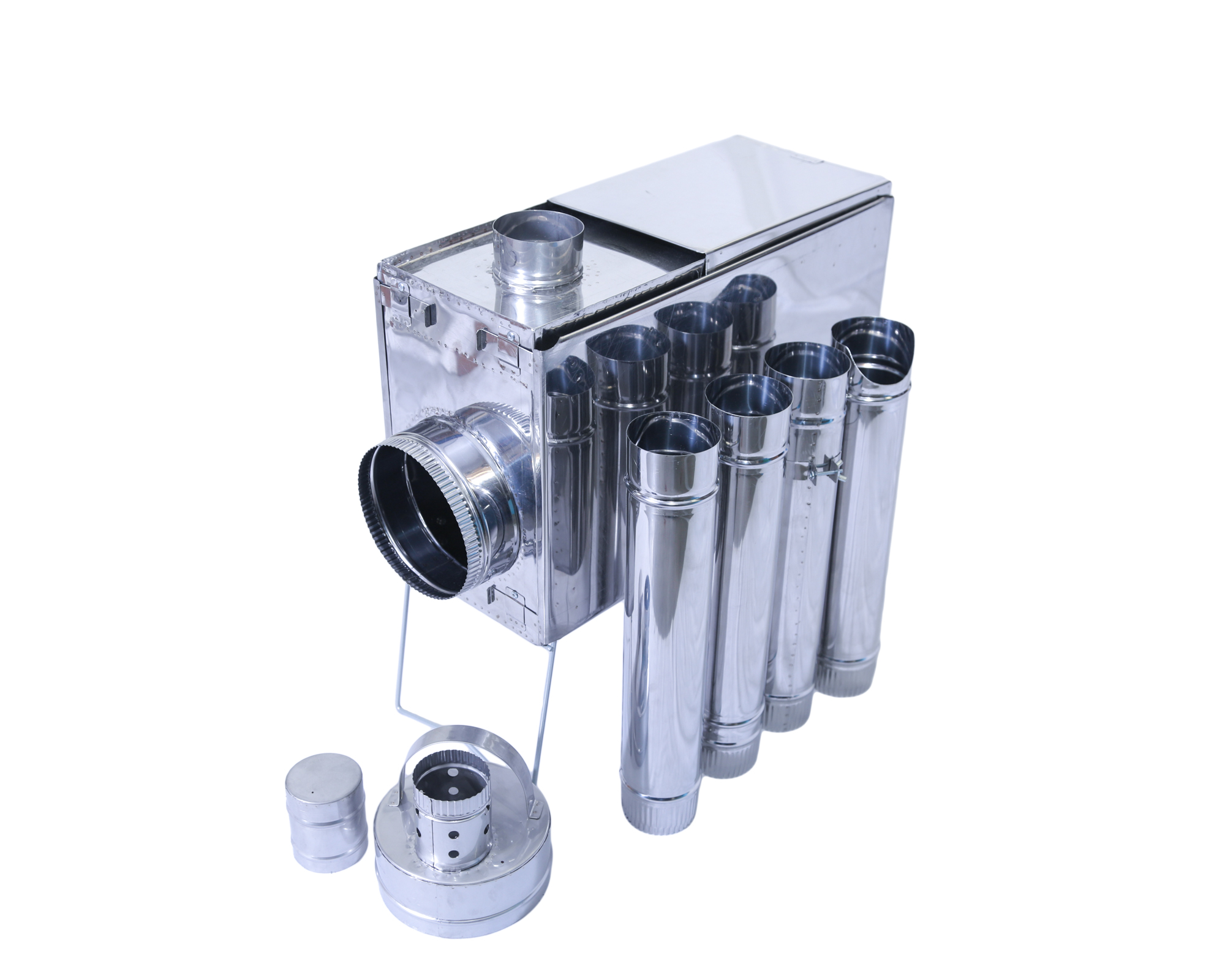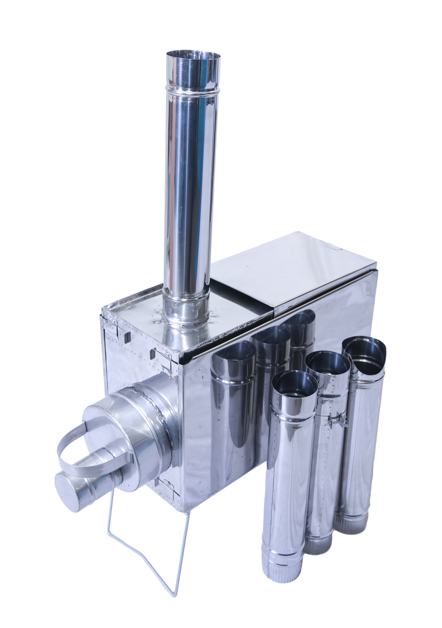 - Колена трубы убираются во внутрь печи при транспортировке. В комплекте 4 колена трубы