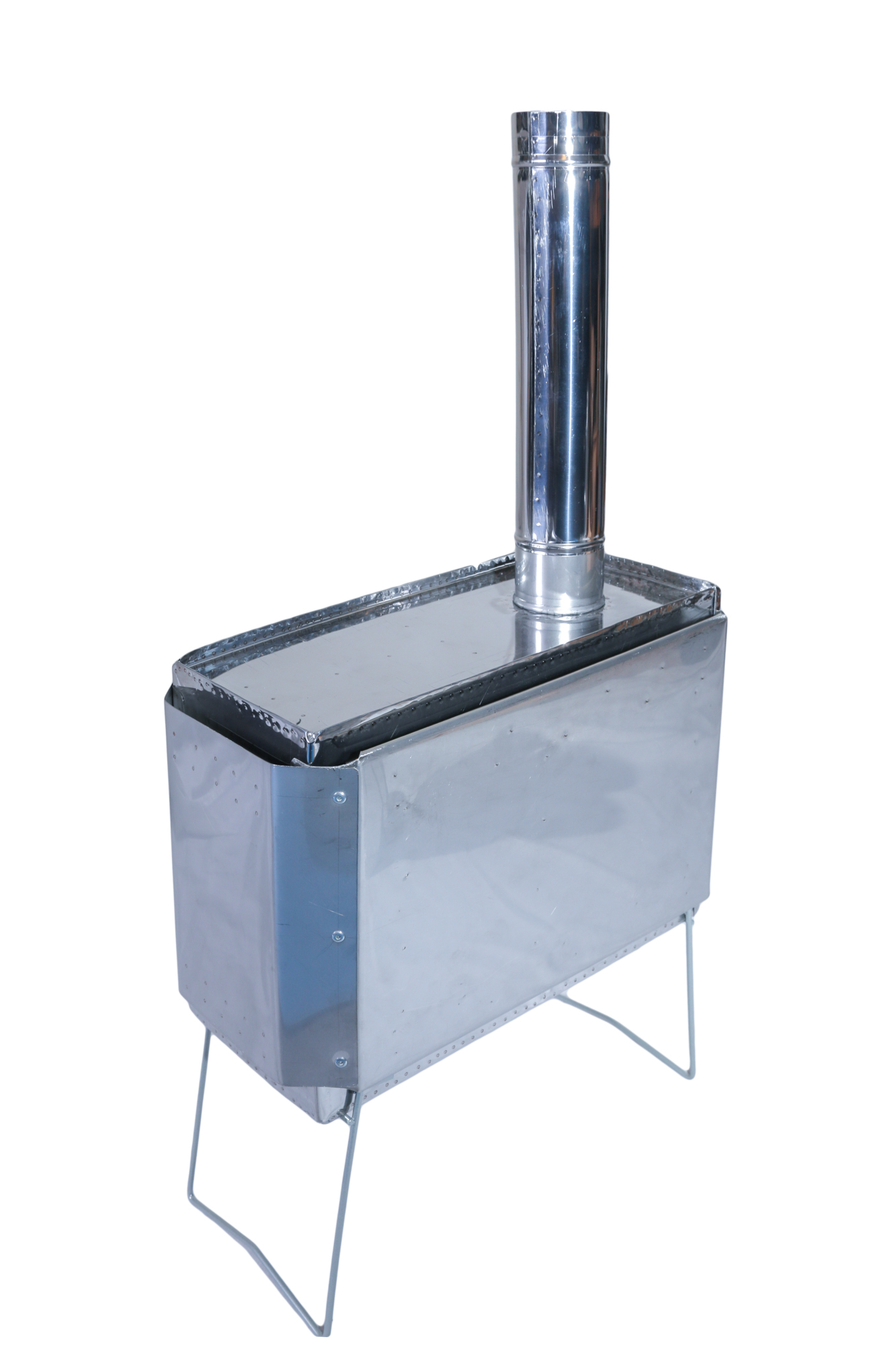 Прекрасно сконструированная туристическая печь с стационарным экраном с трех сторон для обогрева туристических палаток и шатров. Конструкция печки позволяет максимально использовать теплоотдачу при топке любыми дровами. Легкие печки для обогрева палаток разных модификаций разрабатываются, испытываются и выпускаются фирмой ВЕК с 2005 года. Печки изготавливаются из жаропрочной нержавеющей стали марки AISI-430 толщиной 0,4 мм.