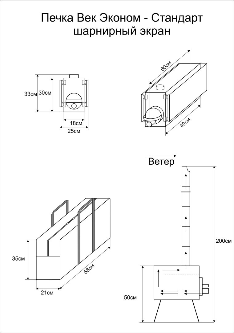 - Прекрасно сконструированная печка для обогрева туристических палаток и шатров на 6-8 человек в межсезонье и зимнее время года с шарнирным экраном.