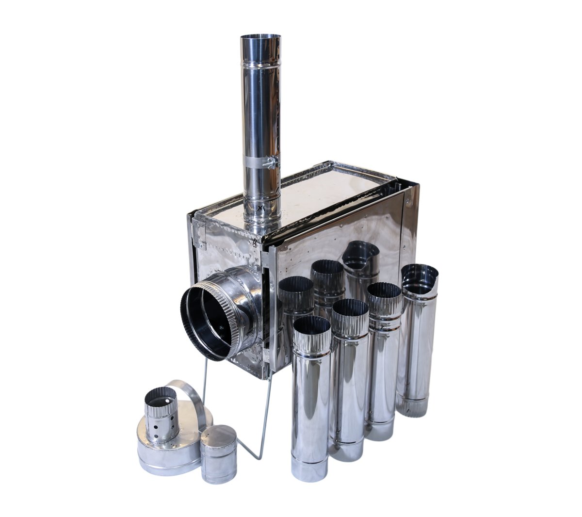 - Колена трубы убираются во внутрь печи при транспортировке. В комплекте 5 колен трубы