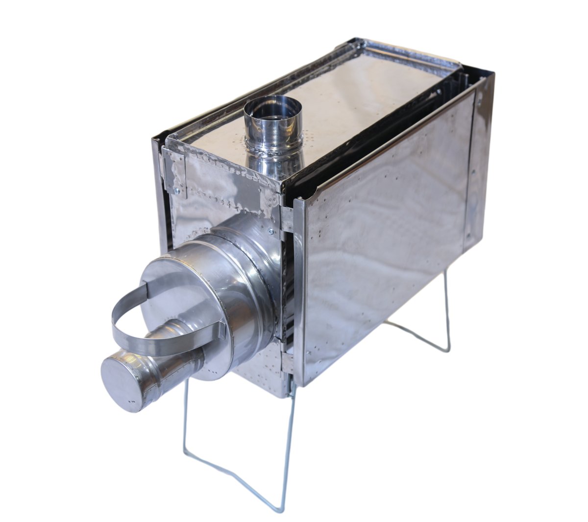 Прекрасно сконструированная туристическая печь с шарнирным экраном с трех сторон для обогрева туристических палаток и шатров. Конструкция печки позволяет максимально использовать теплоотдачу при топке любыми дровами. Легкие печки для обогрева палаток разных модификаций разрабатываются, испытываются и выпускаются фирмой ВЕК с 2005 года. Печки изготавливаются из жаропрочной нержавеющей стали марки AISI-430 толщиной 0,4 мм.