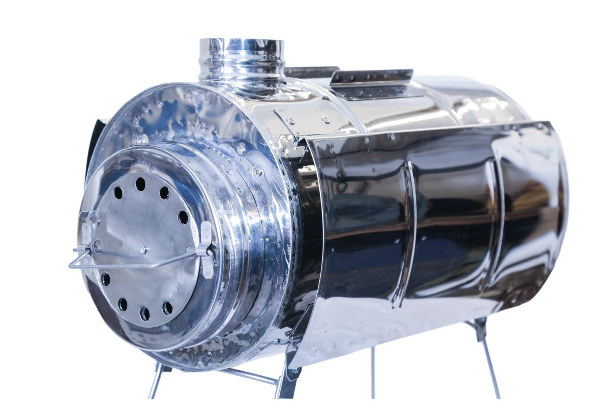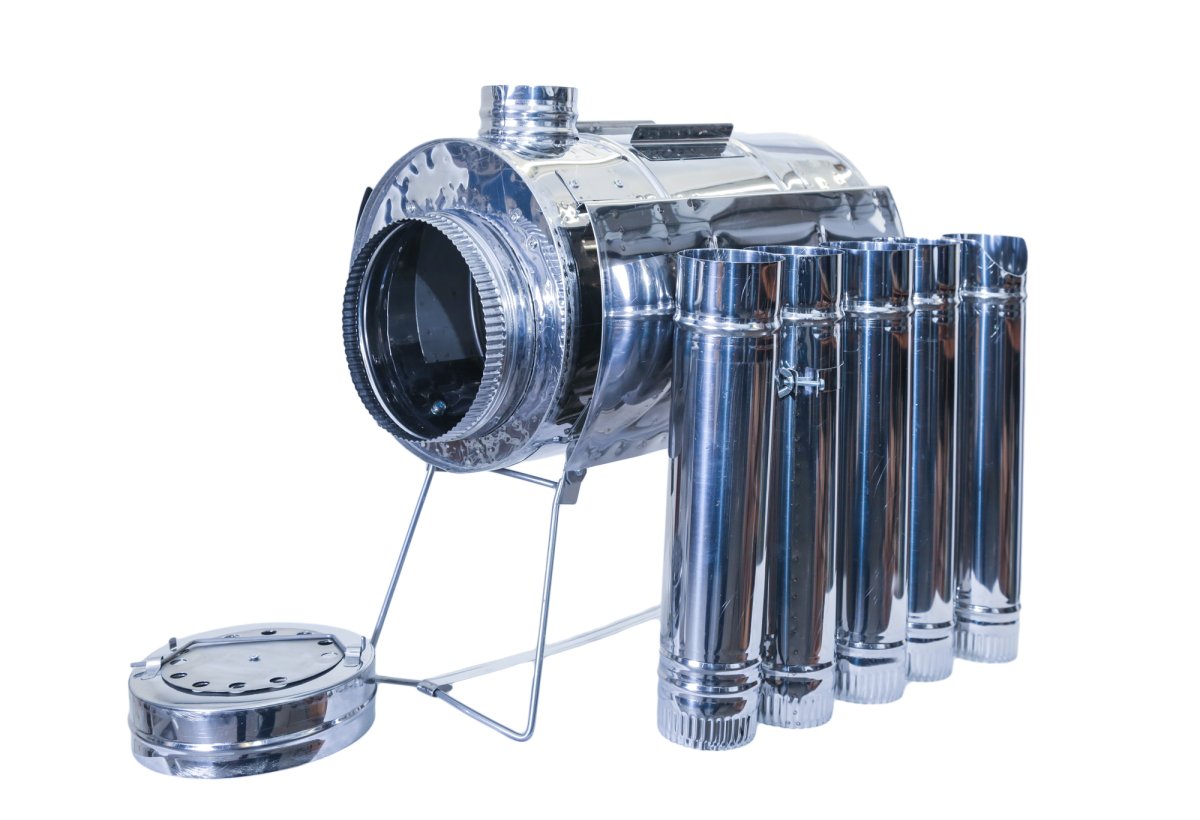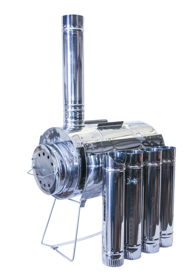 - Колена трубы убираются во внутрь печи при транспортировке. В комплекте 5 колен трубы