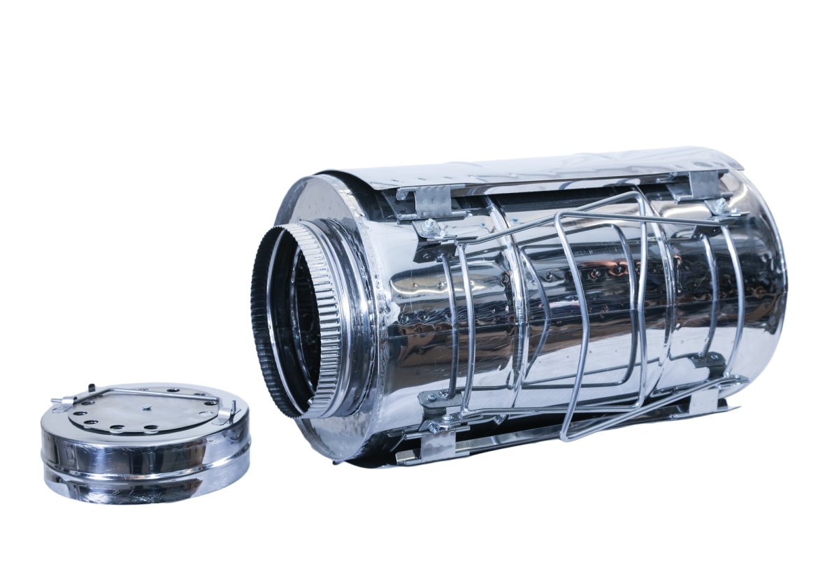 - Одна из важных деталей печки внутренний искрогаситель, который предотвращает выброс искр из трубы и защищает скаты вашей палатки от прожигания