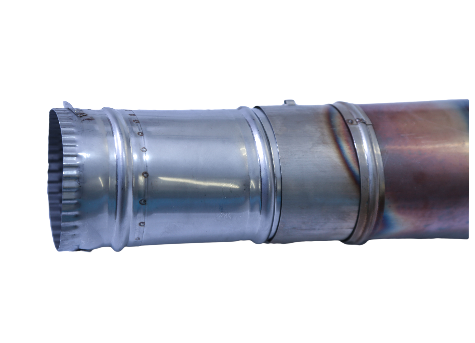 - В "борьбе" за облегчение печки мы заменили стандартную трубу из металла, более легкой трубой из листа пермаллоя. Труба прочно прикрепляется к печке с помощью переходника