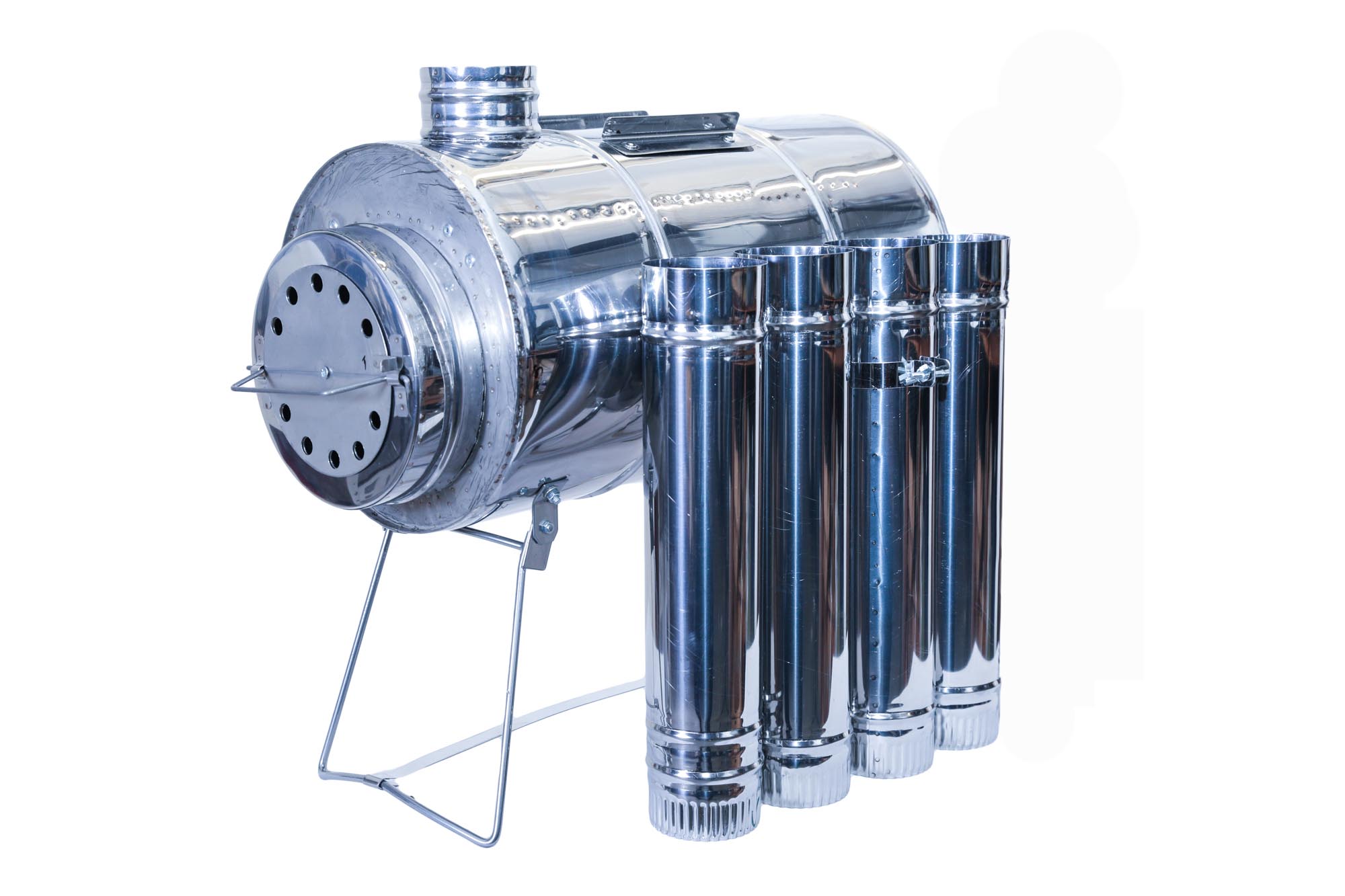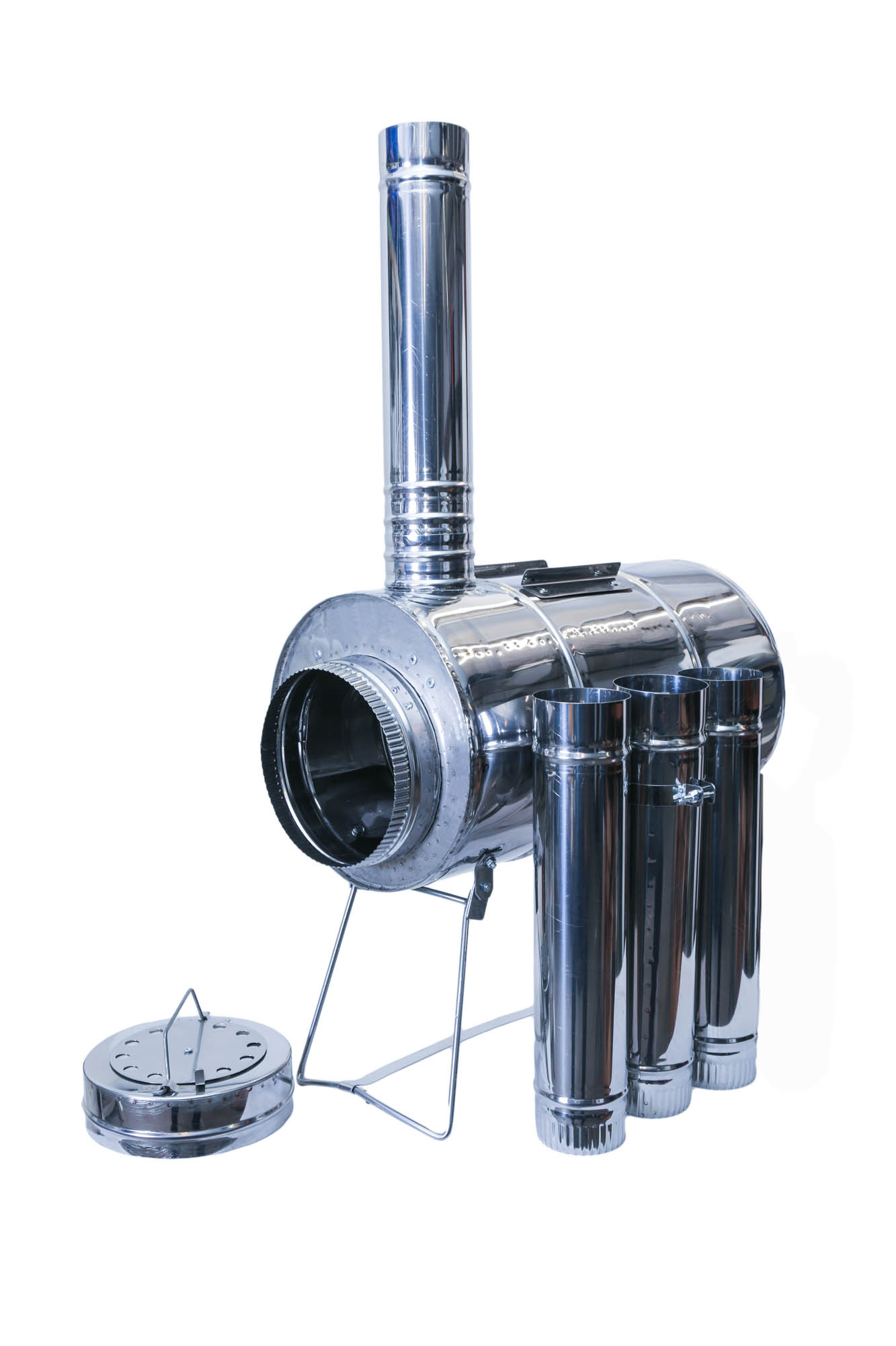 - Колена трубы убираются во внутрь печи при транспортировке. В комплекте 4 колена трубы