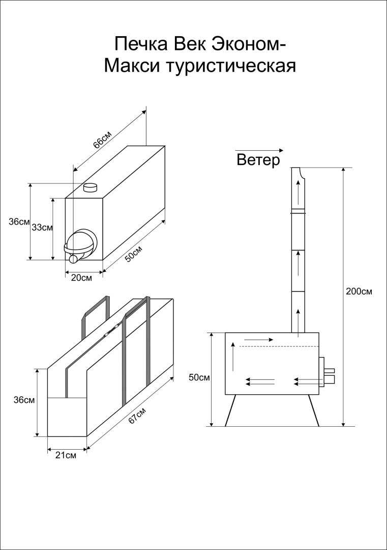 Прекрасно сконструированная Печка Век Эконом-Макси для обогрева туристических палаток и шатров. Универсальная туристическая печь длительного горения с внутренним искрогасителем для зимних походов. Конструкция печки позволяет максимально использовать теплоотдачу при топке любыми дровами. Легкие, переносимые в рюкзаке печки для обогрева палаток разных модификаций разрабатываются, испытываются и выпускаются фирмой ВЕК с 2005 года.