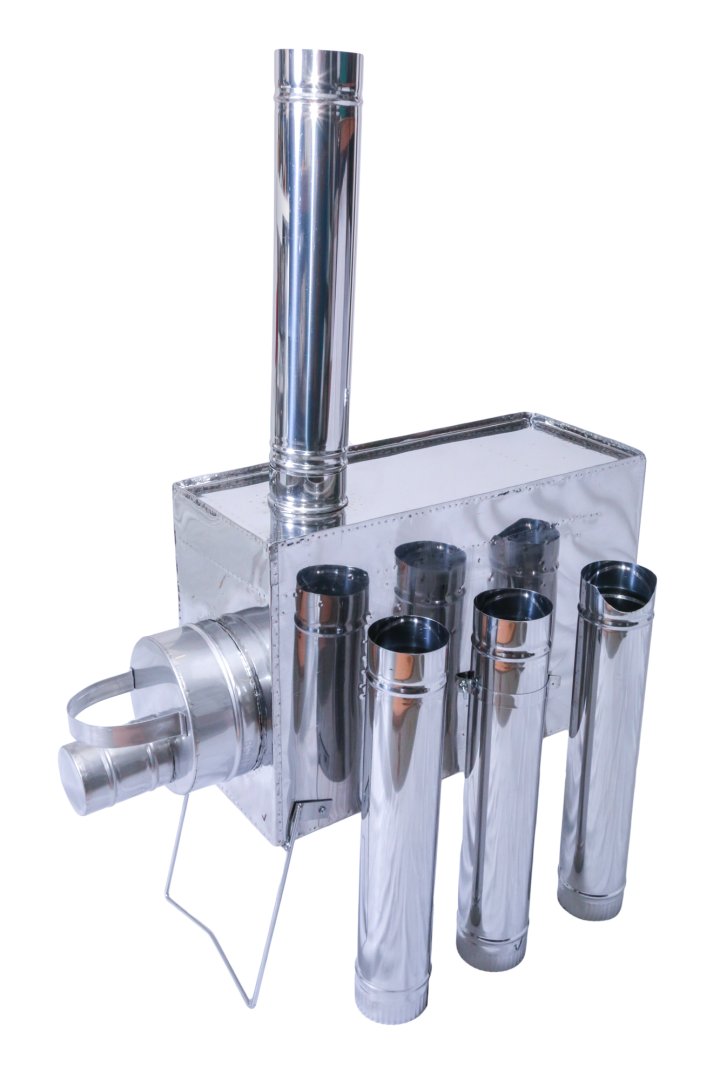 - Колена трубы убираются во внутрь печи при транспортировке. В комплекте 4 колена трубы