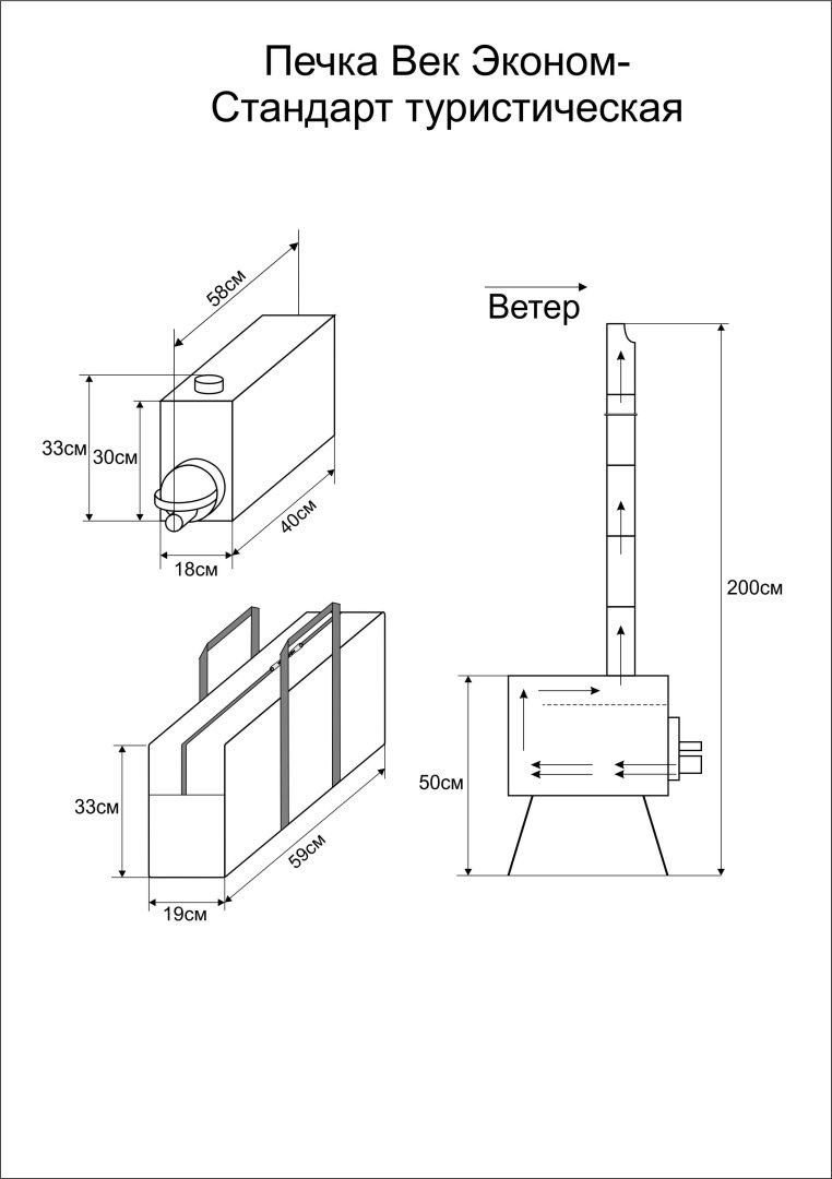 Прекрасно сконструированная Печка Век Эконом-Стандарт для обогрева туристических палаток и шатров. Универсальная туристическая печь длительного горения с внутренним искрогасителем для зимних походов. Легкие, переносимые в рюкзаке печки для обогрева палаток разных модификаций разрабатываются, испытываются и выпускаются фирмой ВЕК с 2005 года.