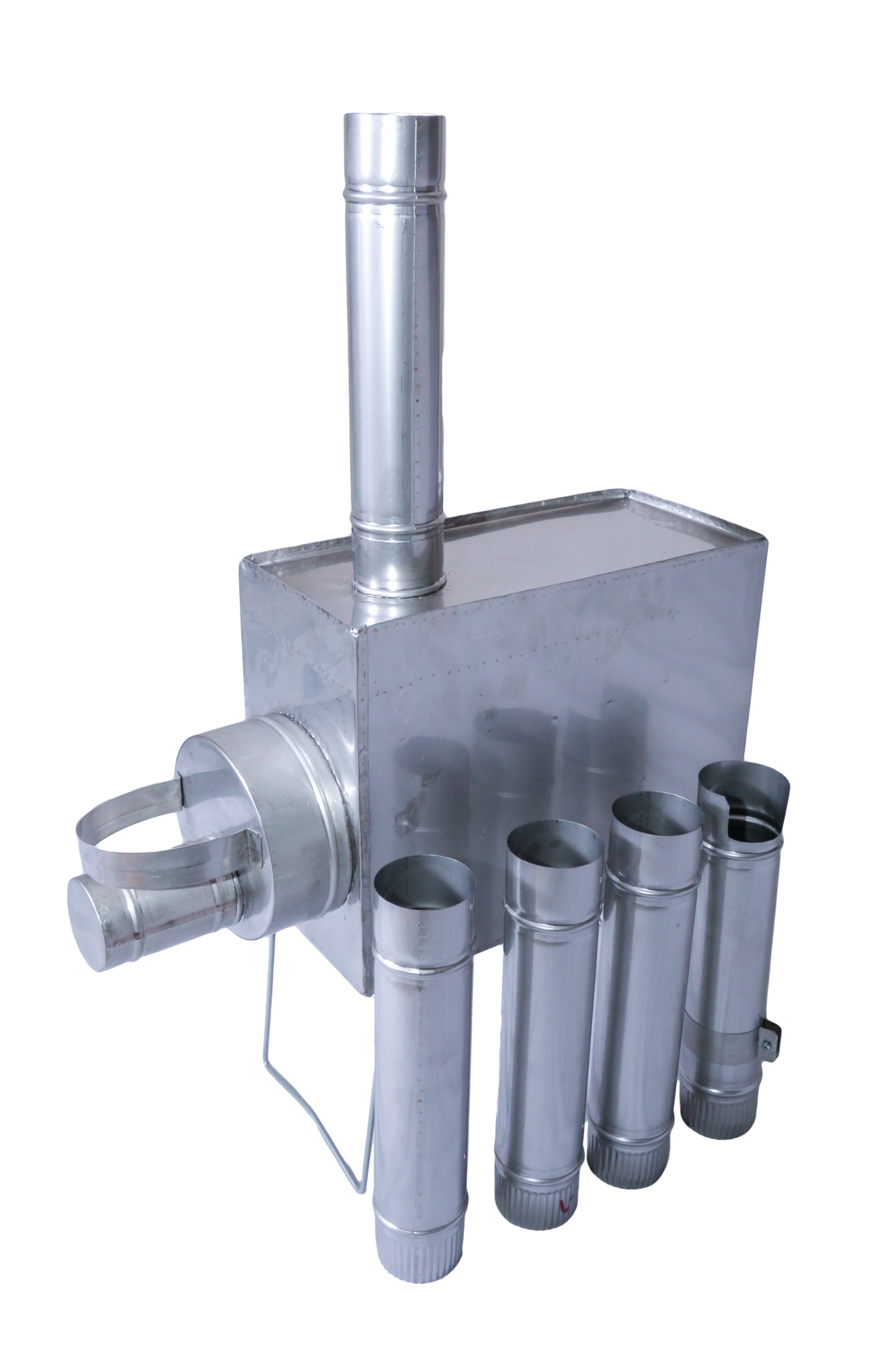 - Колена трубы убираются во внутрь печи при транспортировке. В комплекте 5 колен трубы