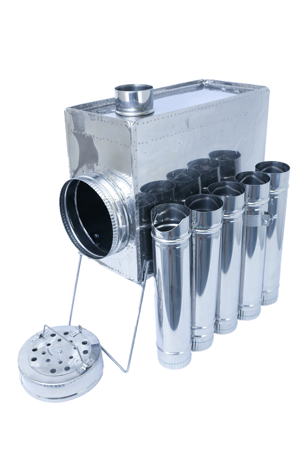 - Колена трубы убираются во внутрь печи при транспортировке. В комплекте 5 колен трубы