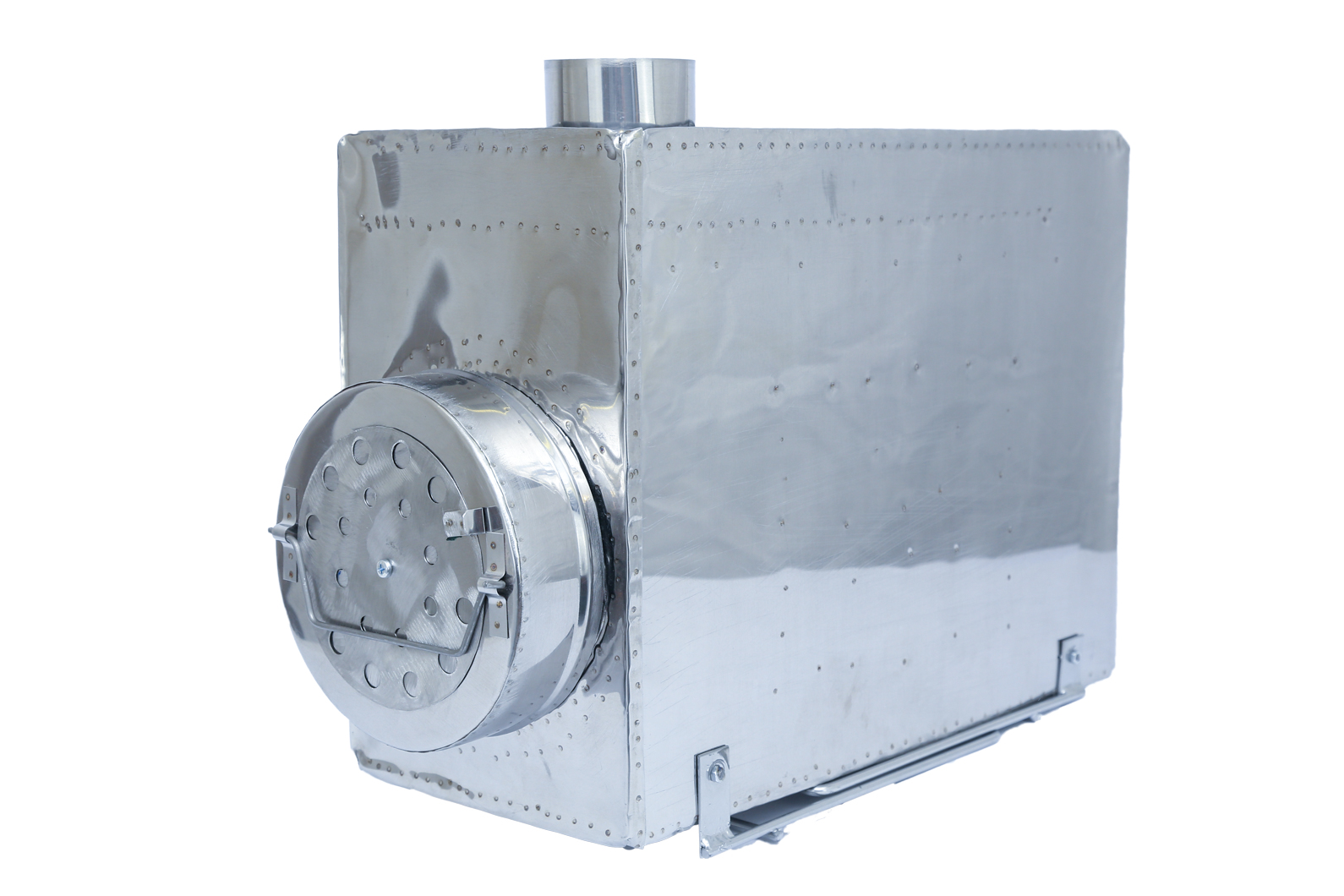 - Вместо дверки в передней части печки сделано круглое отверстие, плотно закрываемое крышкой-заглушкой