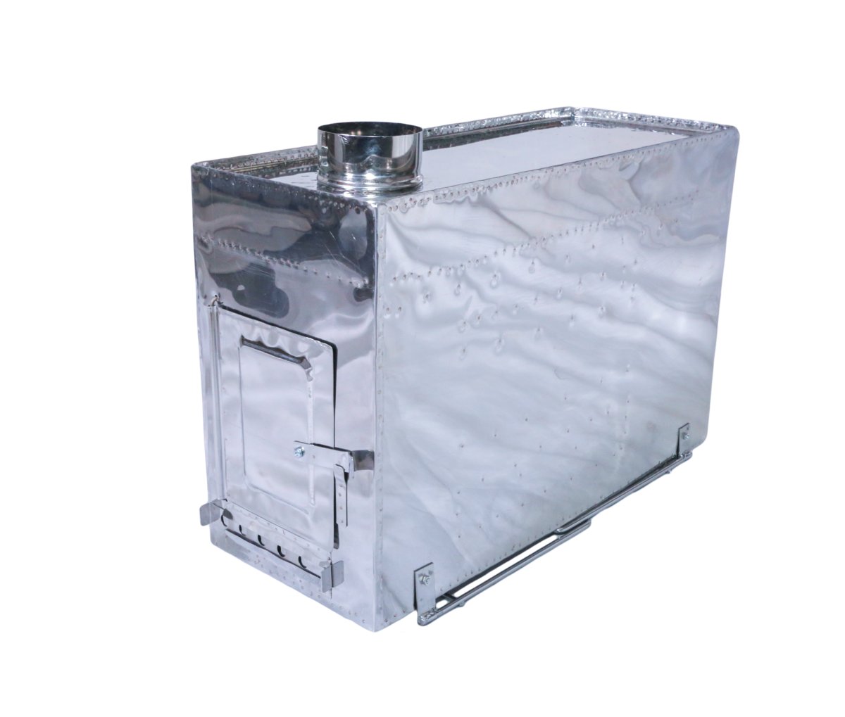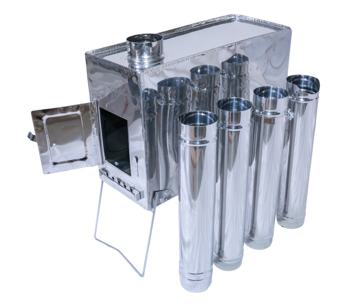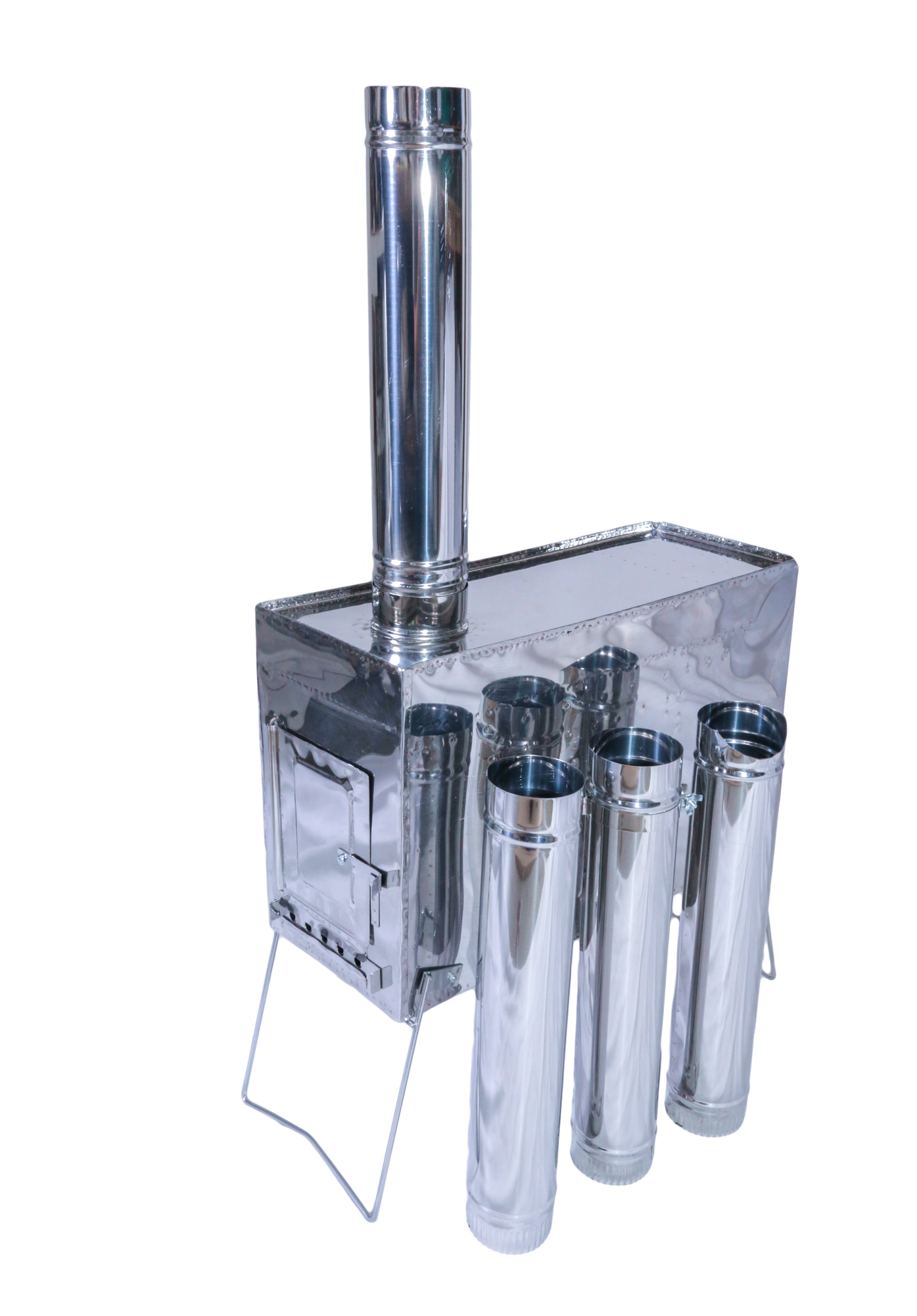 - Печка и колена трубы изготавливаются из жаропрочной нержавеющей стали марки AISI-430 толщиной 0,4 и являются самыми легкими туристическими печками, для обогрева в зимних походах туристических палаток и шатров. Для обогрева длительное время домиков, избушек, стационарных палаток необходимо использовать другие печки, изготовленные из более толстого металла
