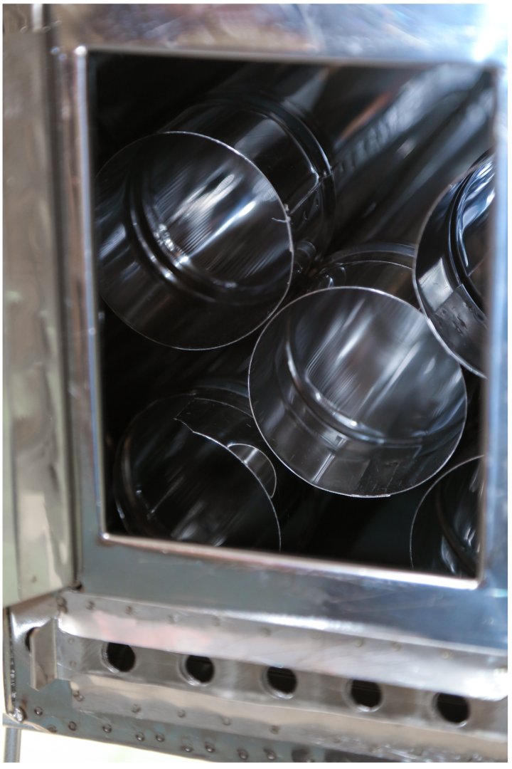 - Колена трубы убираются во внутрь печи при транспортировке. В комплекте 4 колена трубы