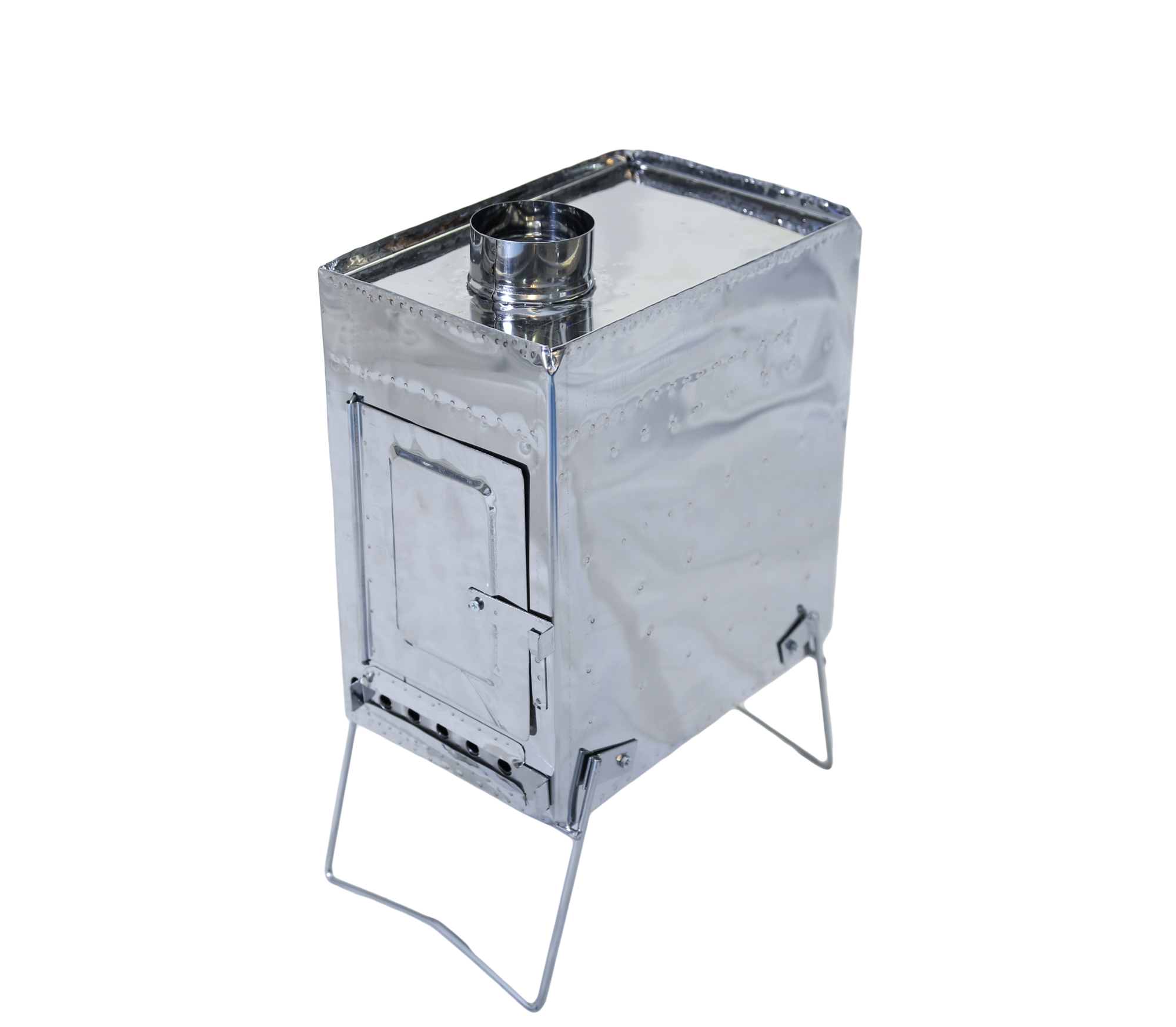 - Печка и колена трубы изготавливаются из жаропрочной нержавеющей стали марки AISI-430 толщиной 0,4 и являются самыми легкими туристическими печками, для обогрева в зимних походах туристических палаток и шатров. Для обогрева длительное время домиков, избушек, стационарных палаток необходимо использовать другие печки, изготовленные из более толстого металла