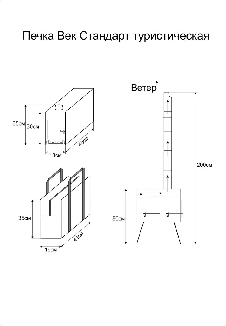 Прекрасно сконструированная Печка Век Стандарт туристическая для обогрева туристических палаток и шатров. Уникальная конструкция печки разработана и испытана конструкторами-туристами фирмы ВЕК. Позволяет максимально использовать теплоотдачу при топке любыми дровами. Печки изготавливаются из жаропрочной нержавеющей стали марки AISI-430 толщиной 0,4 мм, и относятся к классу самых легких туристических печек. Печки выпускаются с 2005 года.